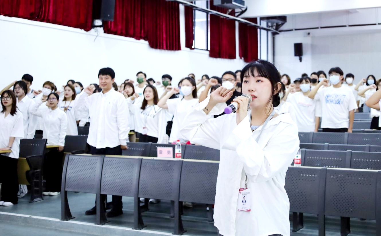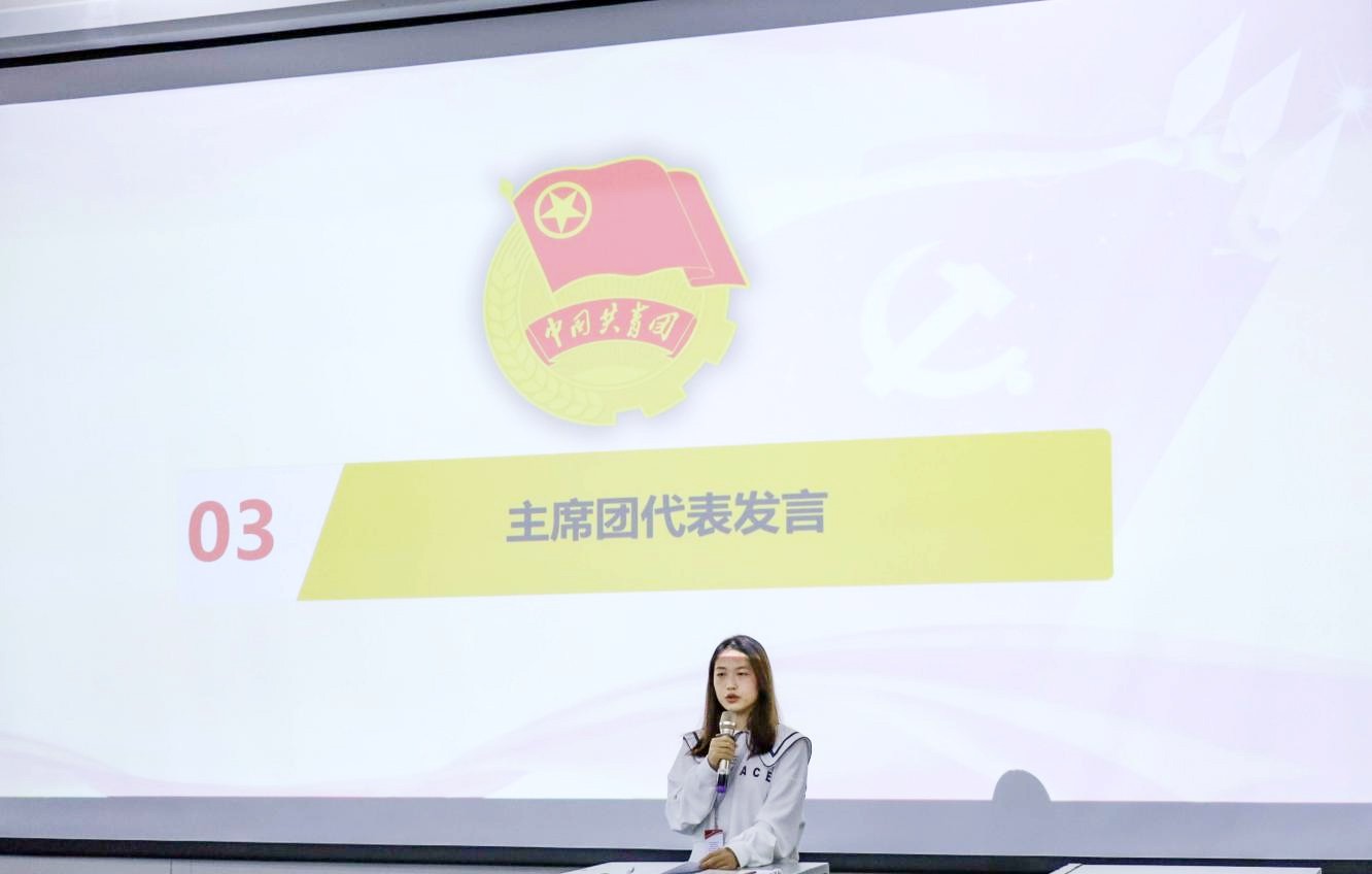 大会第六项,由建筑与环境艺术学院第五届主席团代表唐子岩带领建环学院分团委学生会全体成员宣誓。此刻的宣誓将激励干事们在今后的学习工作中不断向前,为其注入新的活力与期待。