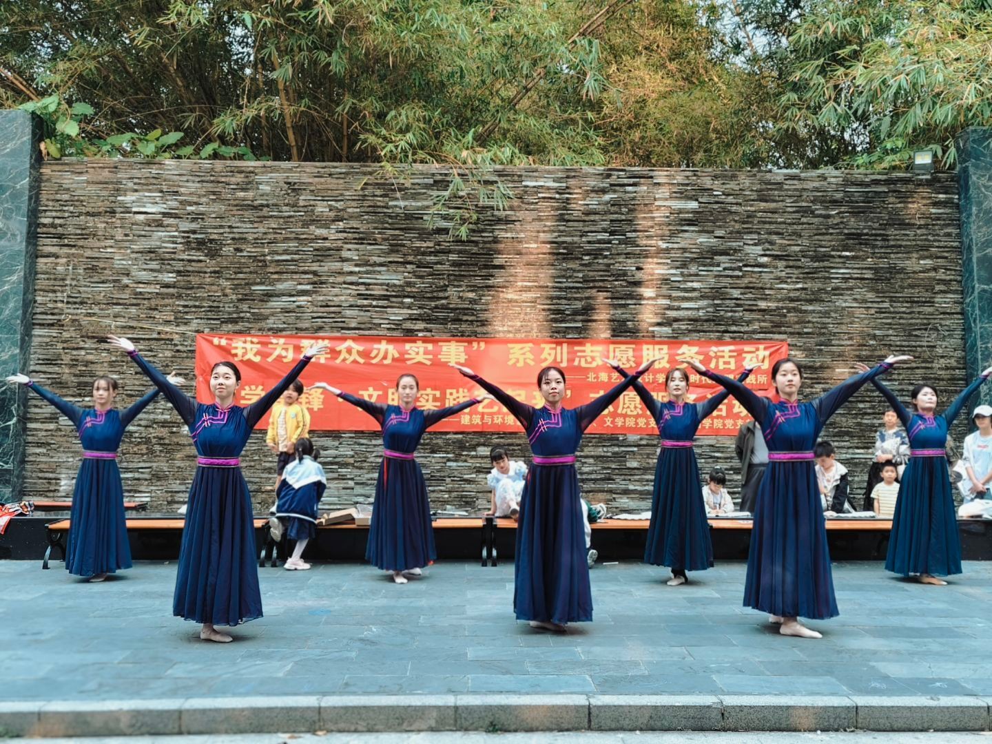 志愿服务活动正式拉开帷幕。舞蹈学院的同学们带来了精心准备的舞蹈节目。他们身着绚丽多彩的民族服饰,迈着轻盈的脚步、展示优美的舞姿,生动地展现了各民族独特的文化魅力,为社区居民带来了一场视觉盛宴。