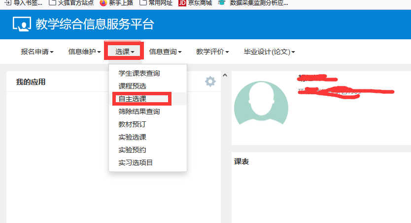 用浏览器打开北海艺术设计学院教务处网站https://jwglxt.sszss.com:8443/jwglxt/xtgl/login_slogin.html(推荐使用IE、QQ或360浏览器);依次点击“教务管理系统(学生入口)”——输入用户名和密码登录--点击“选课”--“自主选课”--“查询”等(可以跨校区选课)--“选课”。