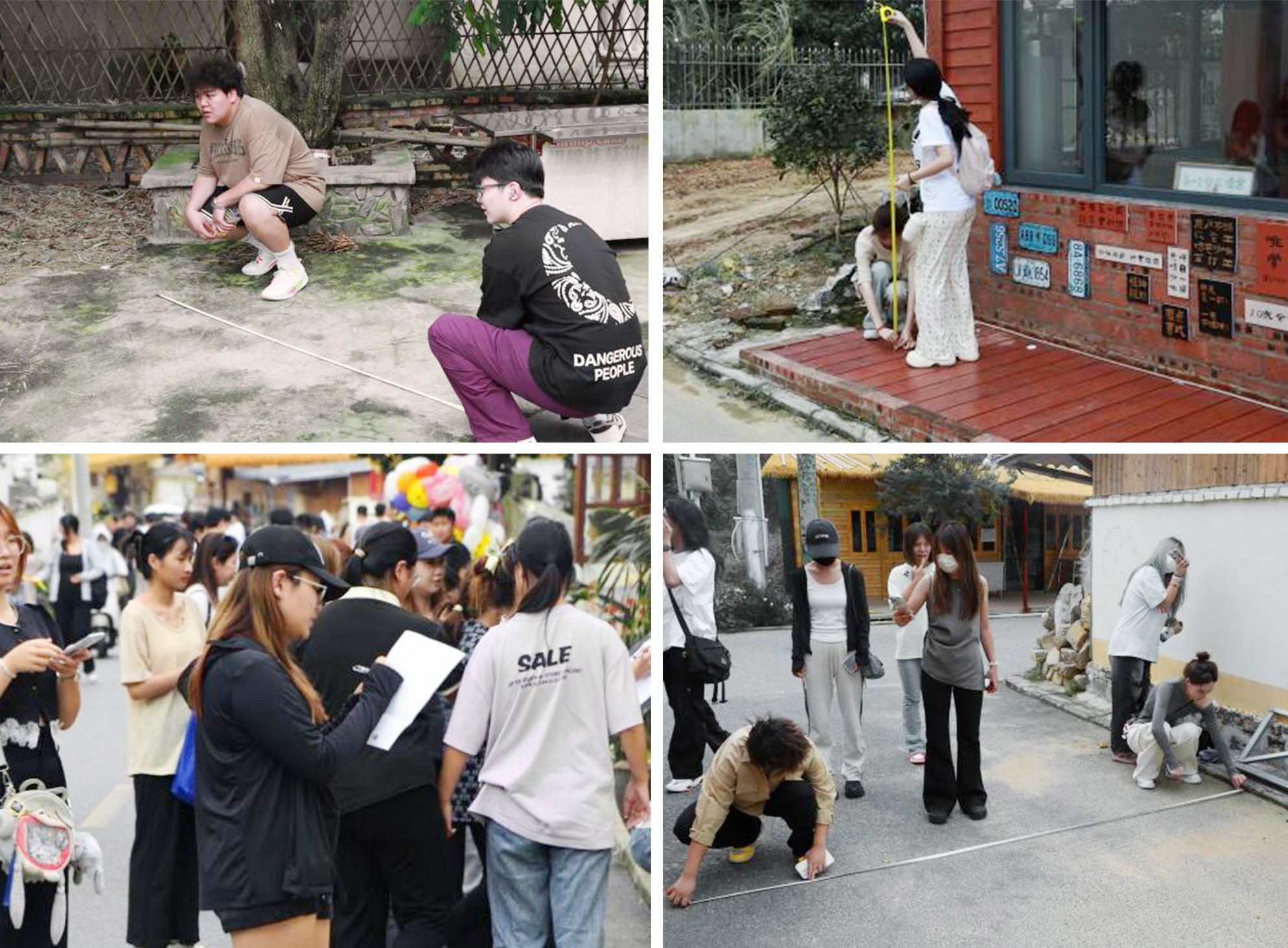(学生根据小组初期方案进行选址、测量、记录)