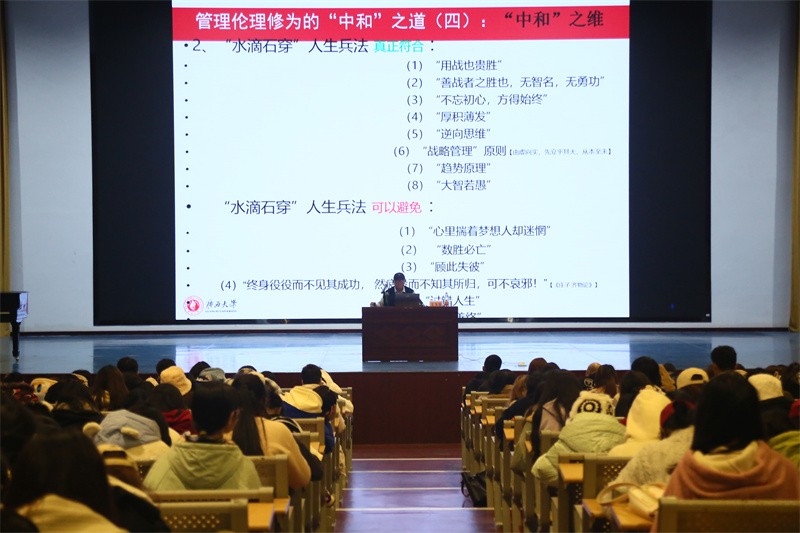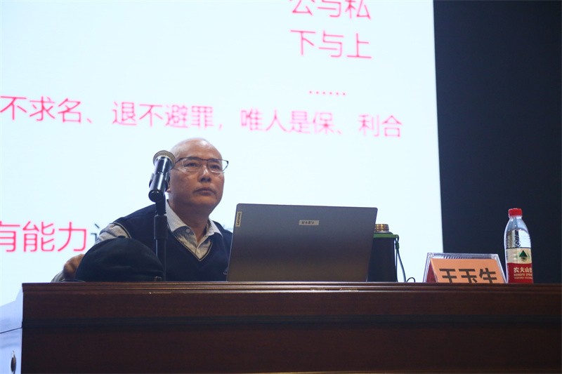 12月18日晚,于我校西校区大礼堂,广西大学王玉生教授为我校师生带来一场题为《管理伦理修为的“中和”之道》的精彩讲座。