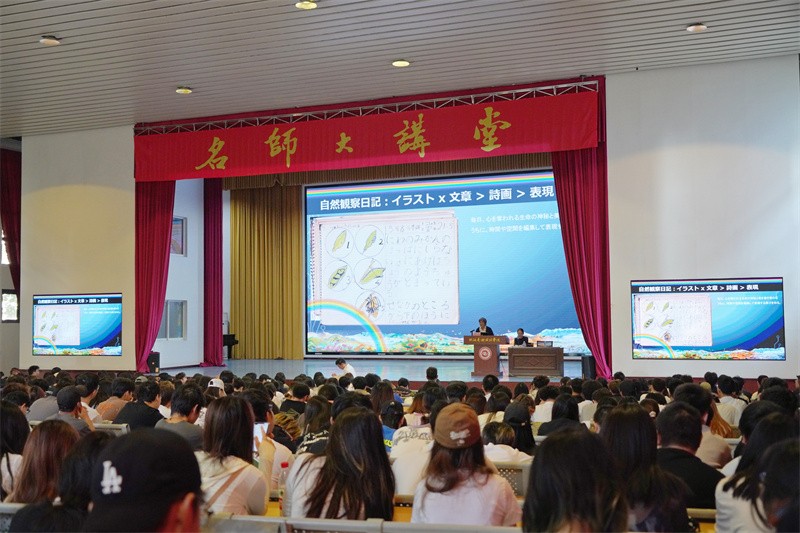 大野一兴教授指出童心是创造力之母,好奇心是创造力之父。进行艺术创作时要保持童心和好奇心来激发不断的创造力。大野一兴教授分享了其儿时细致观察昆虫等小动物,对所得观察结果进行绘画记录,并在往后的创作中运用这些元素的经历,向同学们说明了日常生活观察和勤做积累对作品创作的重要性。