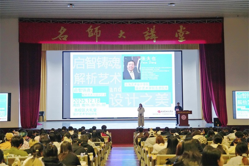 讲座尾声,张夫也教授播放了融合古典艺术元素与当代数字视觉技术的短片,以直观形式展现艺术形式随时代发展的无限可能性。他总结强调,理解“美”与“审美”的核心要义,关键在于培养跨越时空界限、连接古今中外的观察力与共情力。他寄语师生:在未来的学习与创作道路上,应自觉承担“美的发现者、阐释者与创造者”的责任使命,将深厚的文化底蕴转化为创新动力,以艺术与设计的力量回应时代发展需求,助力塑造更具美感的社会生活形态。(王静/摄)