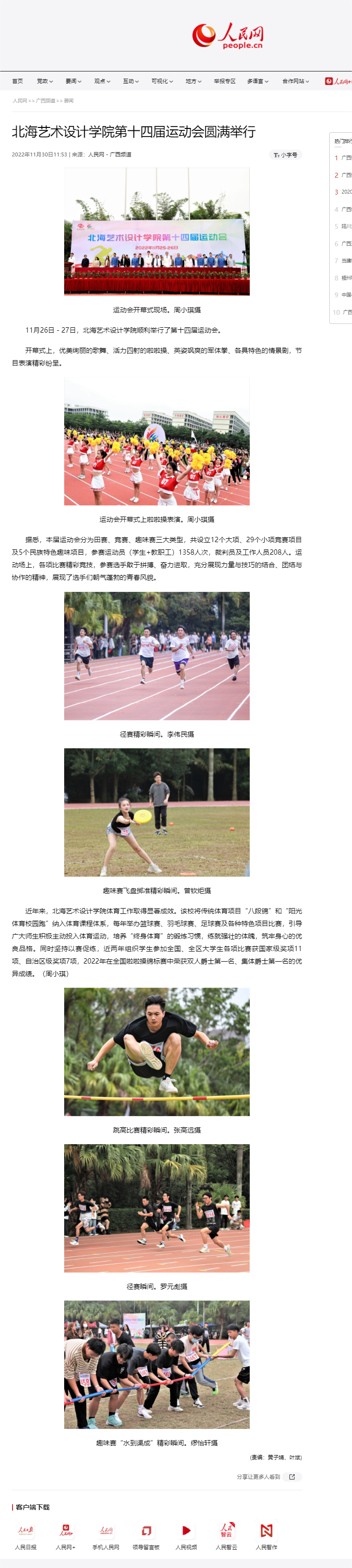 人民网:北海艺术设计学院第十四届运动会圆满举行
