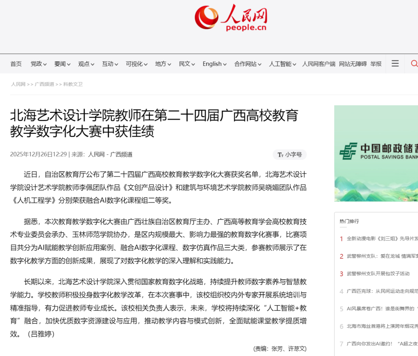 人民网:北海艺术设计学院学子在2025年全国大学生数字素养与技能大赛中获佳绩