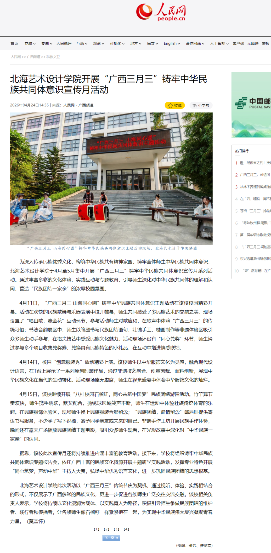 人民网:北海艺术设计学院开展“广西三月三”铸牢中华民族共同体意识宣传月活动