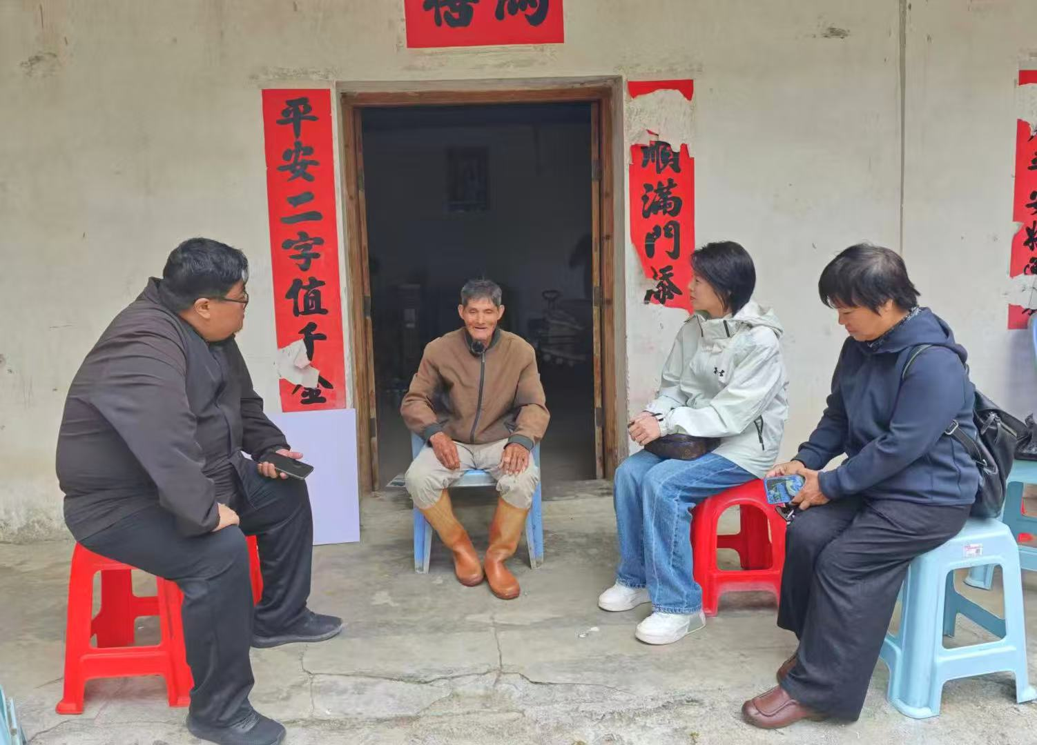 (横岭村老人与师生交谈)