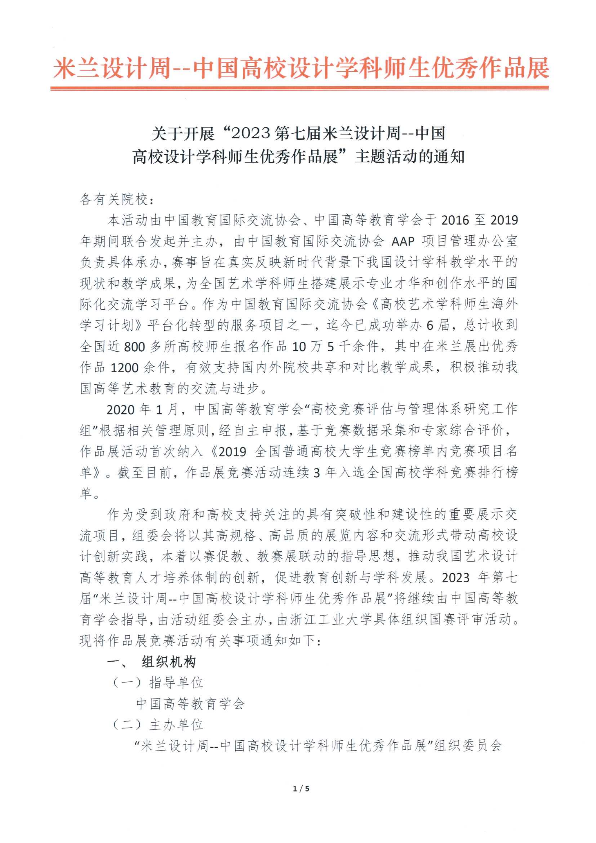 【赛事通知】关于举办2023年第七届“米兰设计周-中国高校设计学科师生优秀作品展”大赛的通知