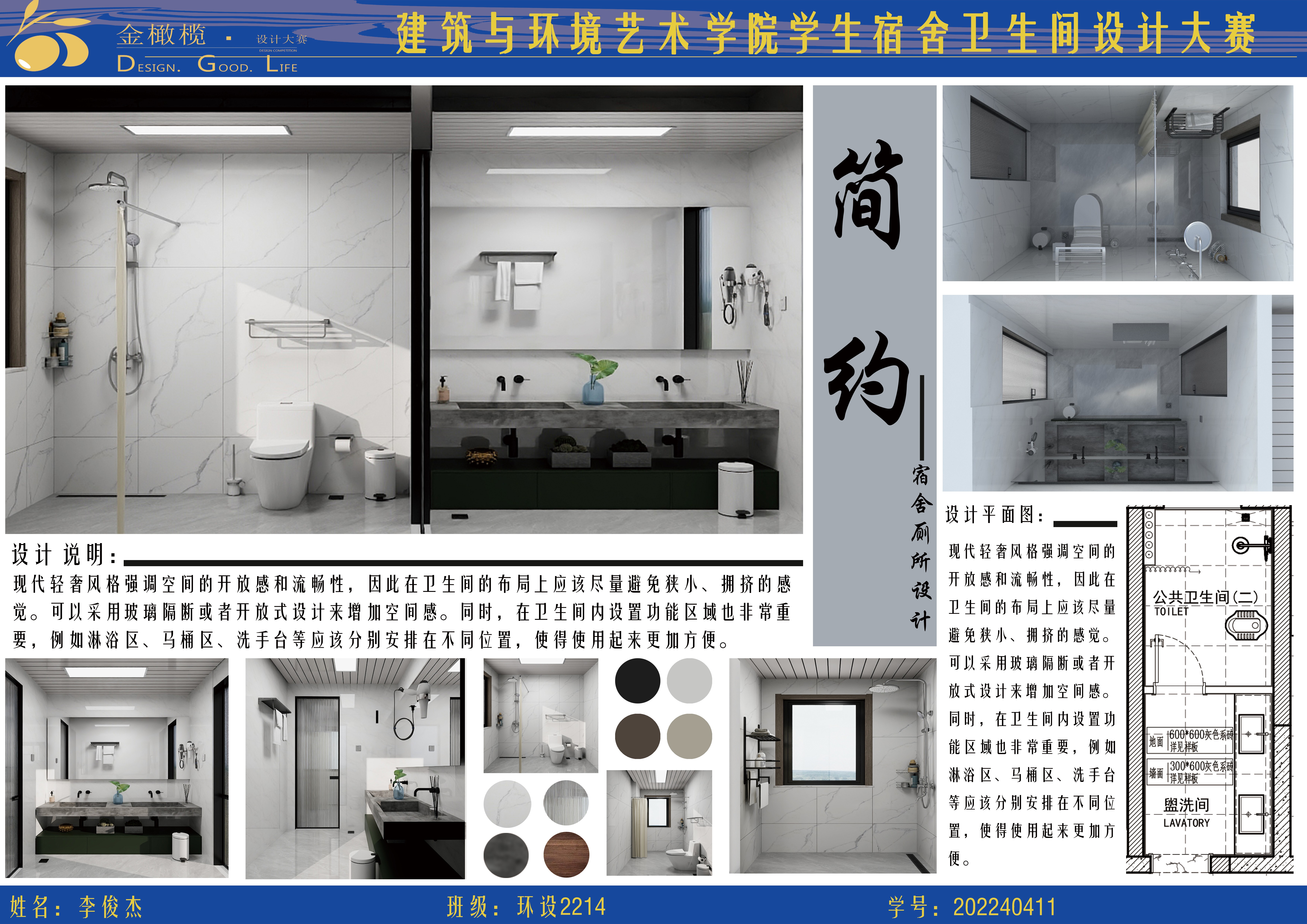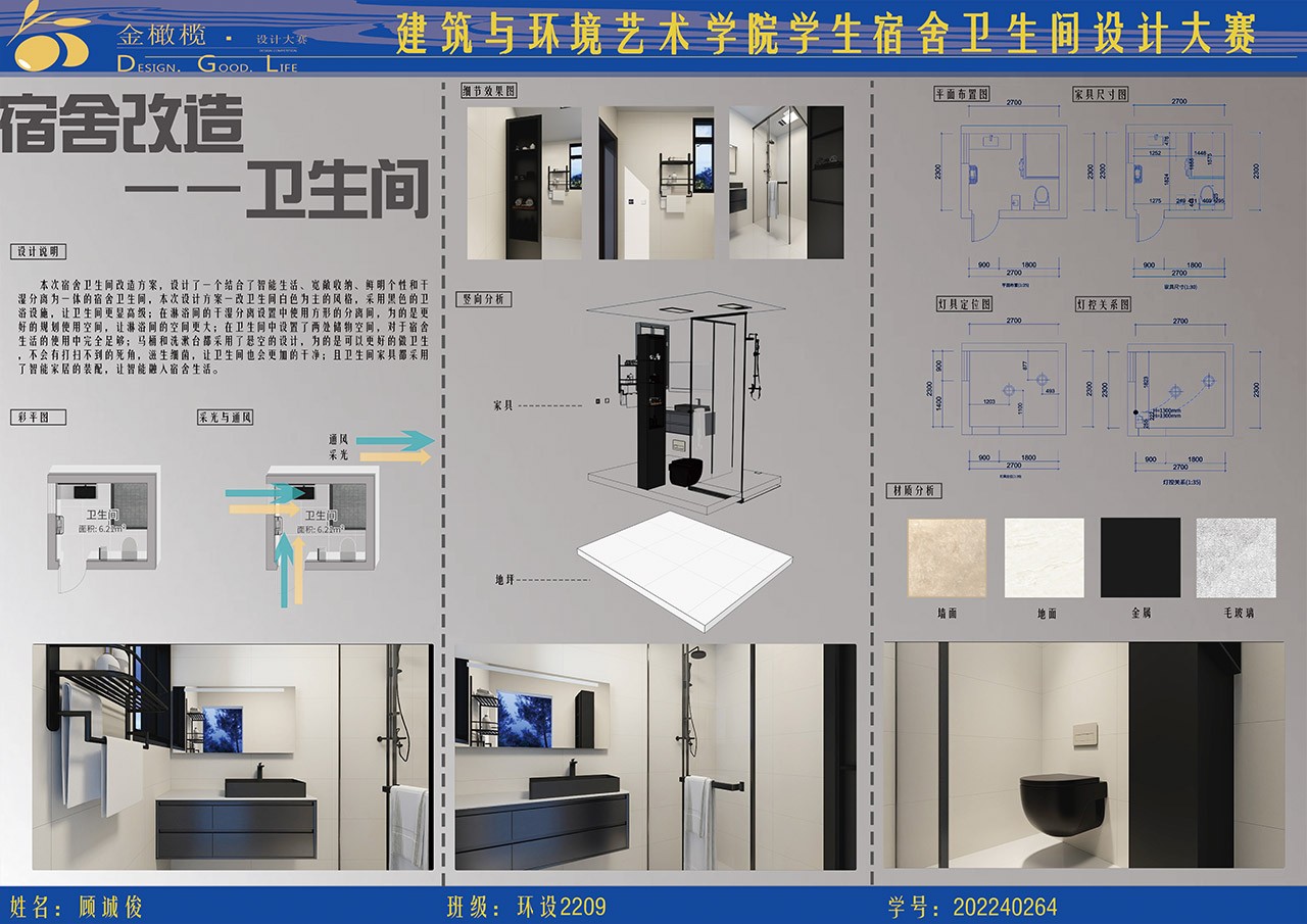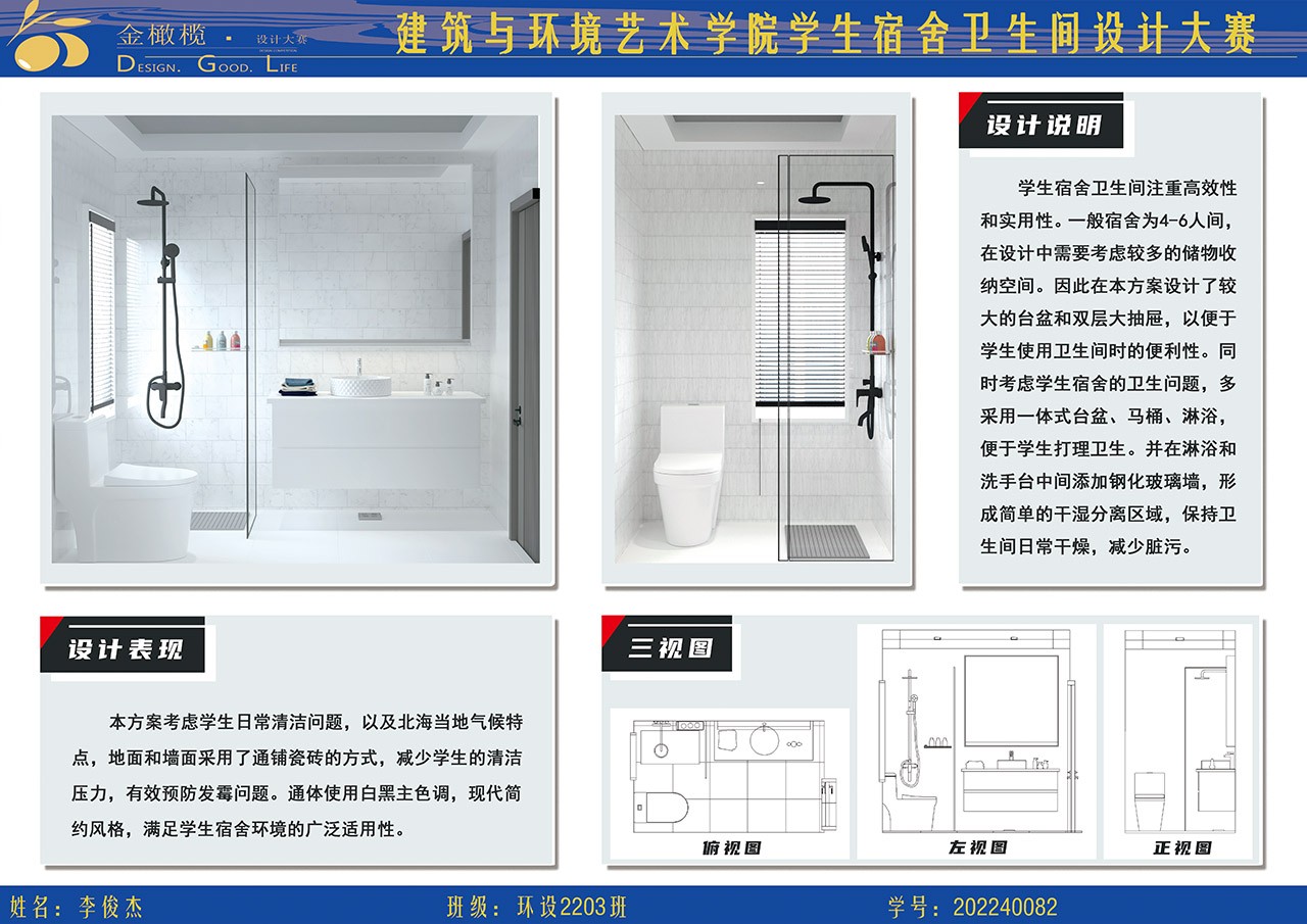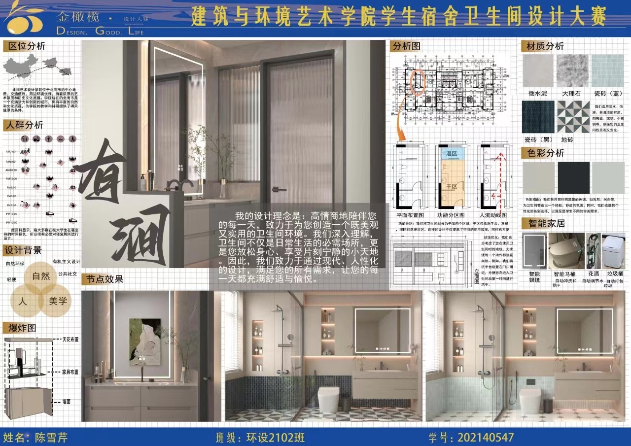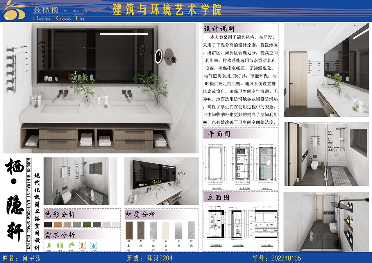 2024年 建筑与环境艺术学院 金橄榄 学生宿舍卫生间设计大赛
