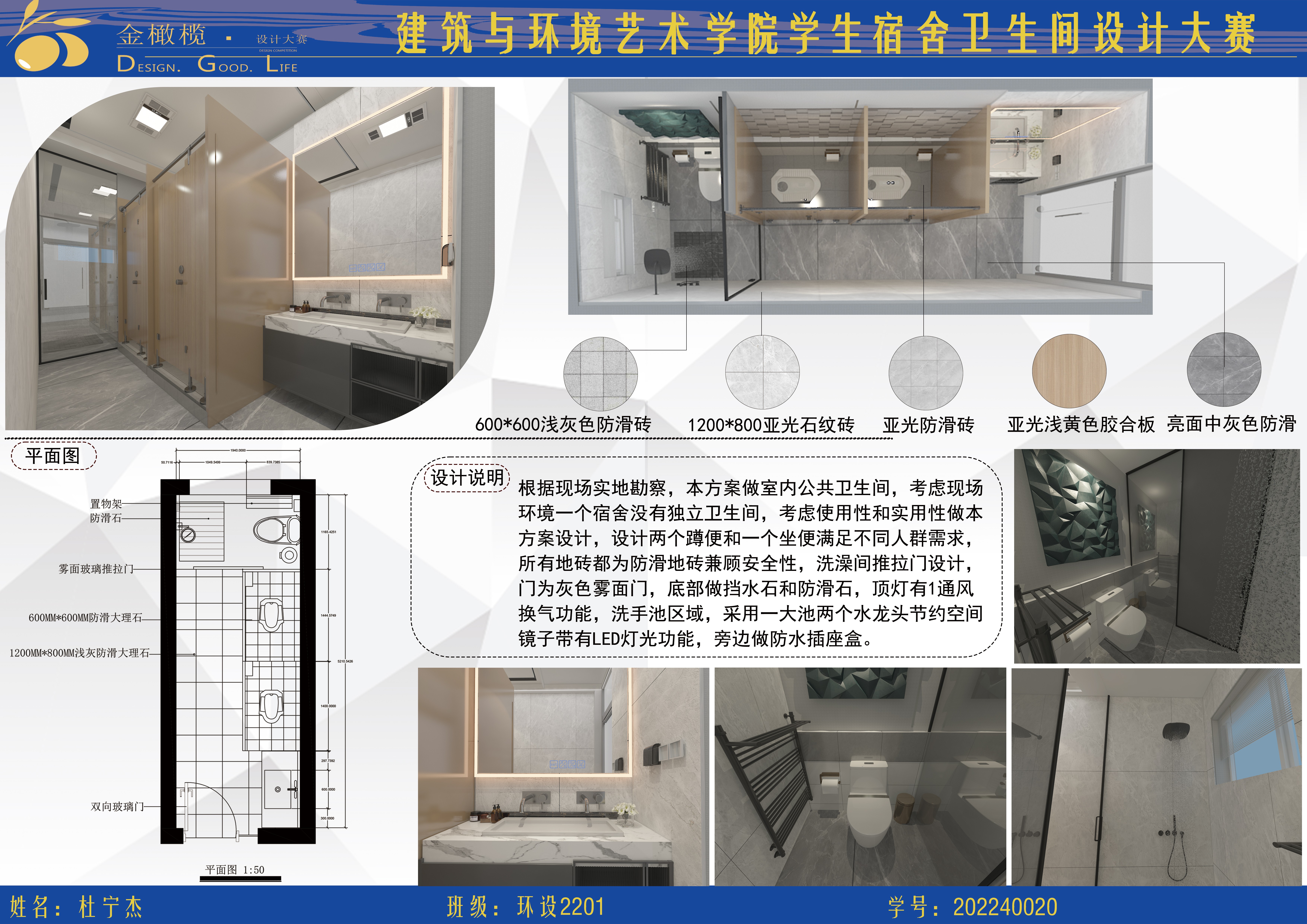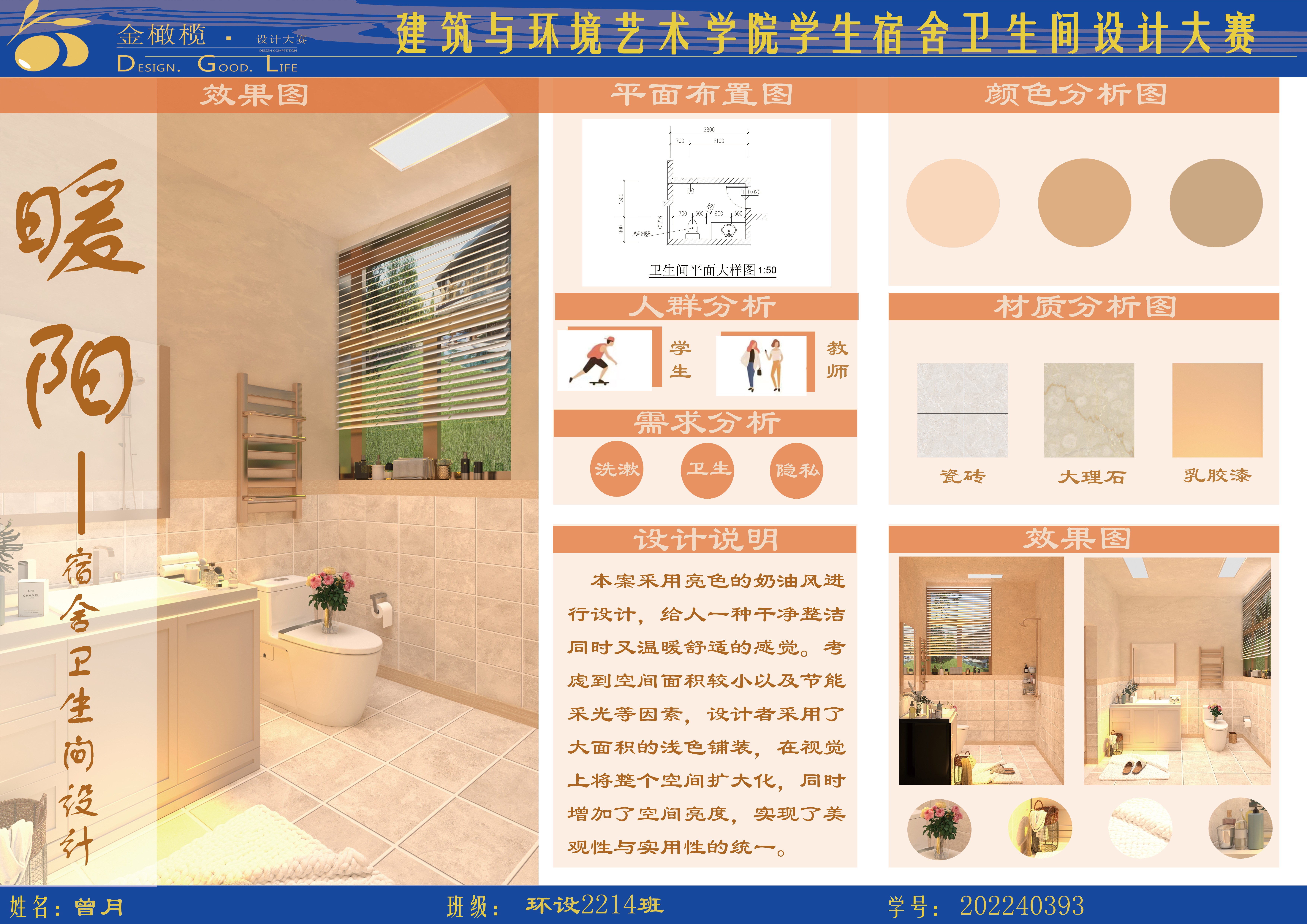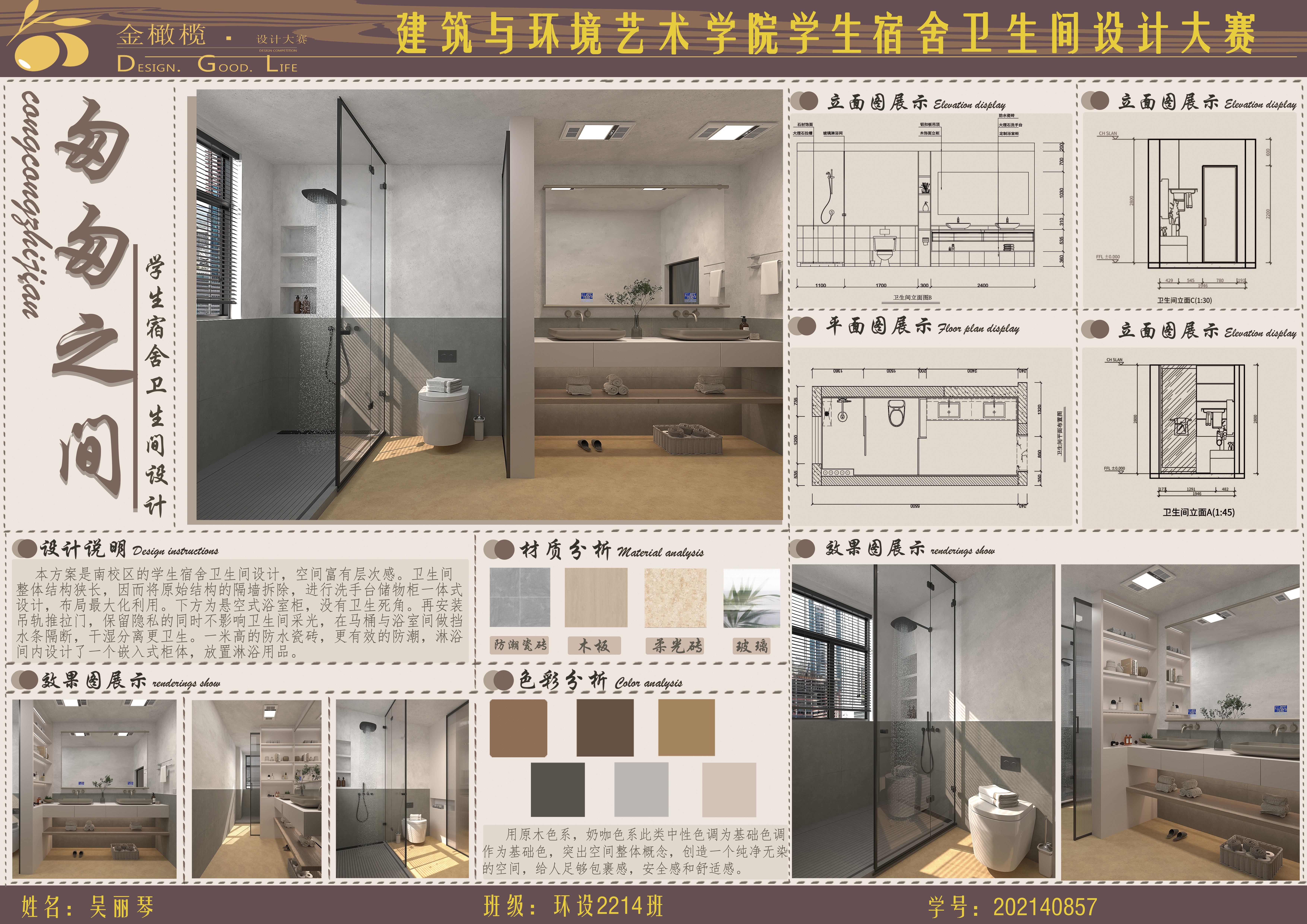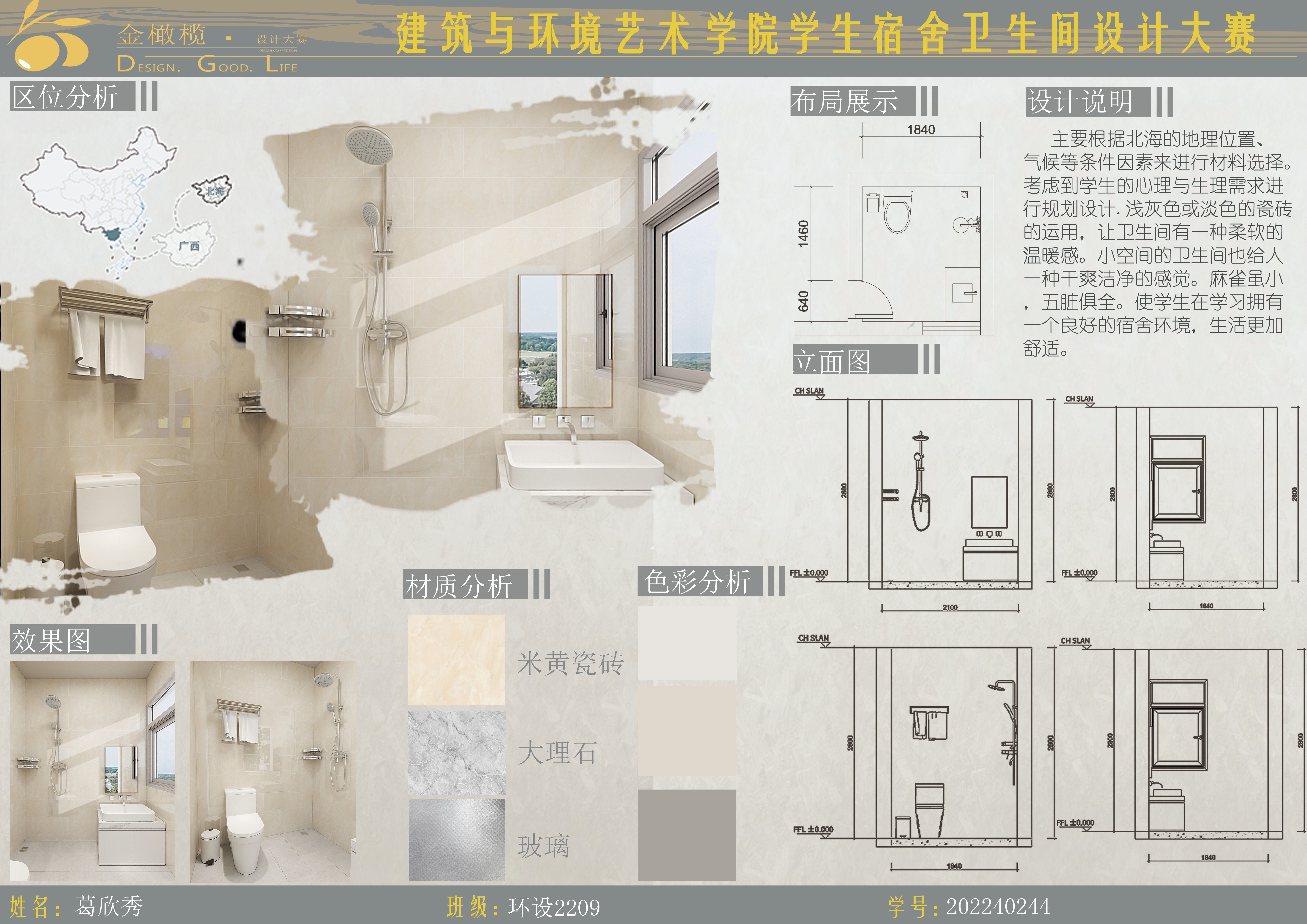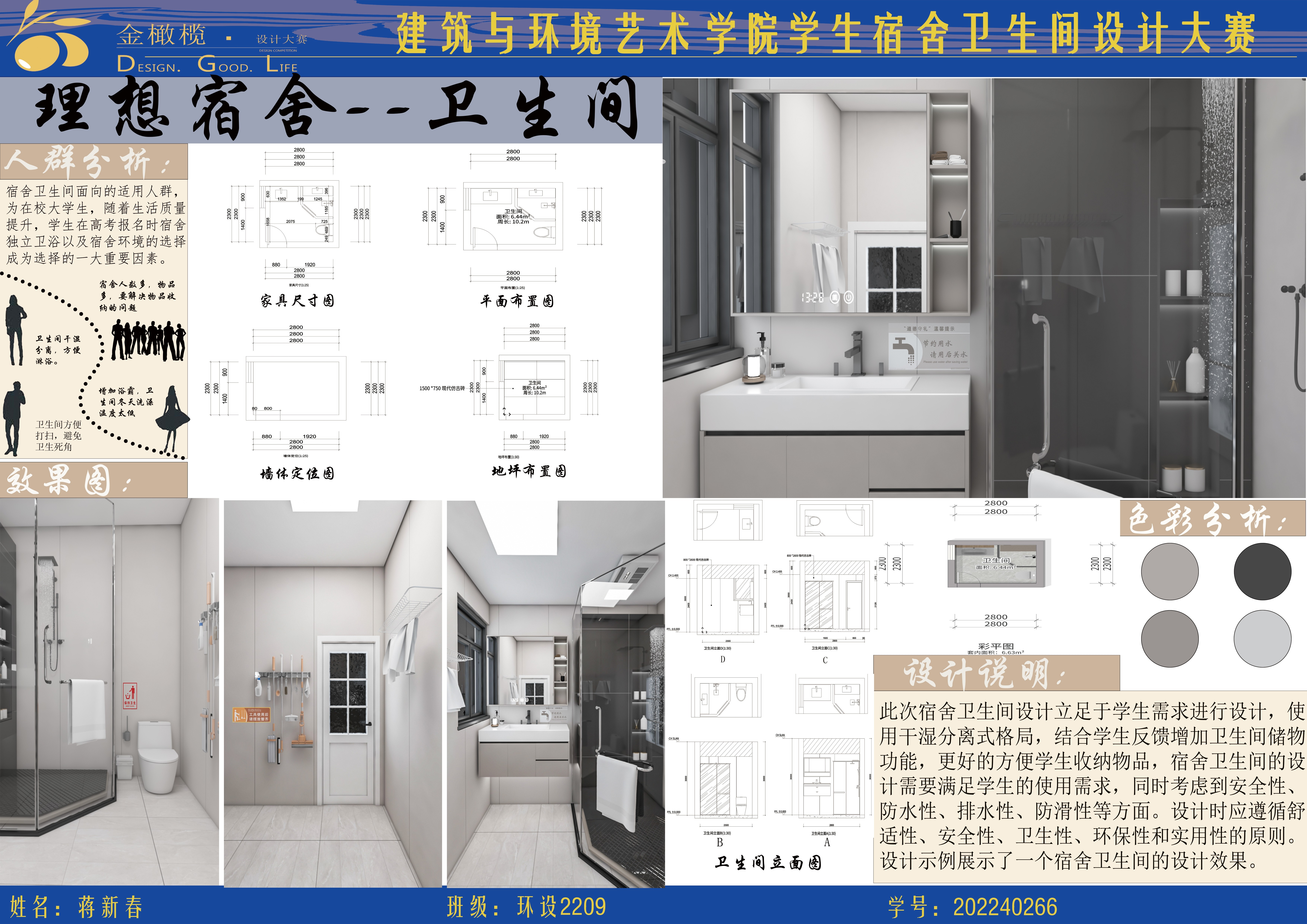 2024年 建筑与环境艺术学院 金橄榄 学生宿舍卫生间设计大赛