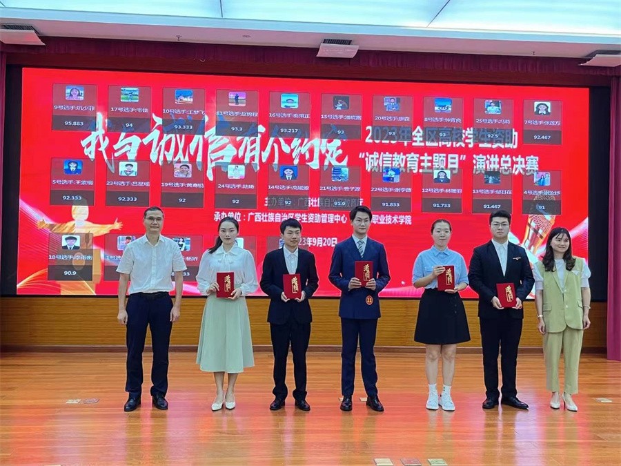 本届全区学生资助主题演讲比赛总决赛由自治区教育厅主办,自治区学生资助管理中心、南宁职业技术学院共同承办,以“我与诚信有个约定”为主题,旨在培育受助学生的诚信与感恩意识,进一步推进广西壮族自治区学生资助育人工作。演讲比赛分为半决赛和总决赛两个阶段。我校选手赵锦程一路过关斩将,以柳州半决赛赛区第一名的好成绩进入总决赛,与来自广西各高校的80名选手共同角逐。