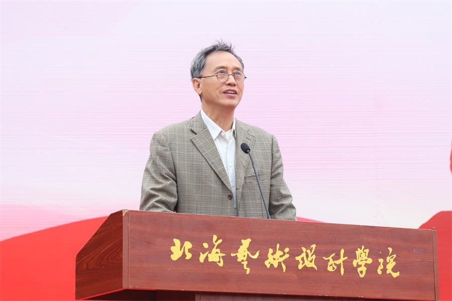 动员大会上,我校卢新华校长向北海海城区人民武装部领导授军训团团旗并宣布2023级学生军训开训。(周小琪、郭松、王弘武、周雨晨、高闻雨、相恒佳/摄)
