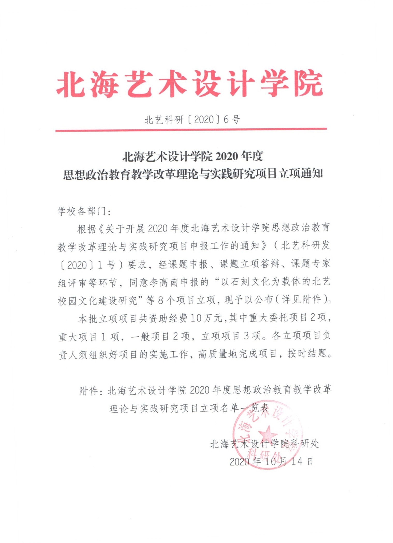 北海艺术设计学院2020年度思想政治教育教学改革理论与实践研究项目立项通知