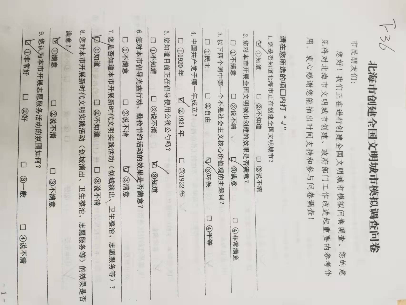 截止至17日15点整,所担任“18户居民填写调查问卷任务”,已完成18户。(许荣军 摄)
