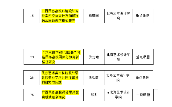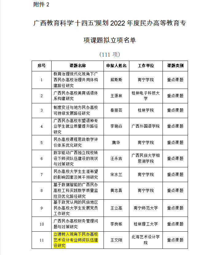 关于广西教育科学规划领导小组对教育科学“十四五”规划2022年度高校创新创业教育、民办高等教育专项课题拟立项名单公示的通告