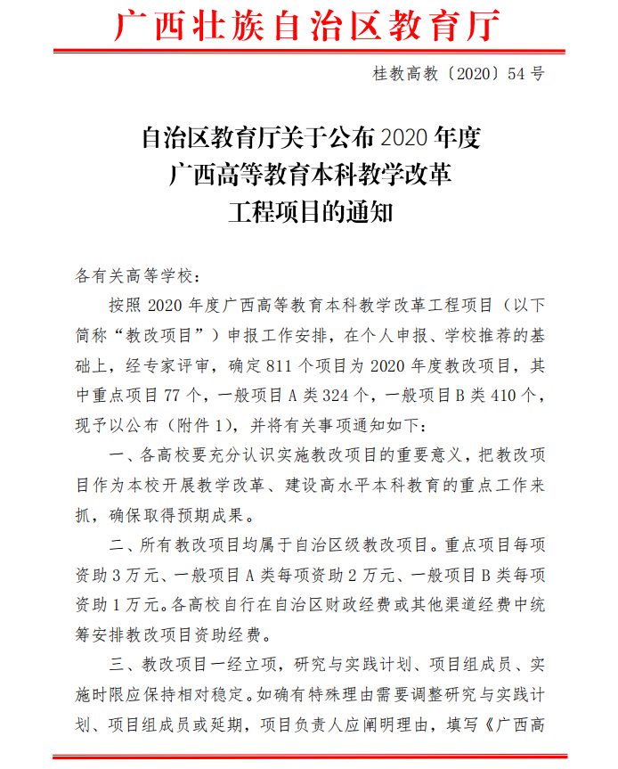 自治区教育厅关于申报2020年度 广西高等教育本科教学改革工程项目的通知