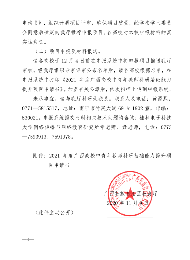 自治区教育厅关于组织申报2021年度广西高校中青年教师科研基础能力提升项目的通知