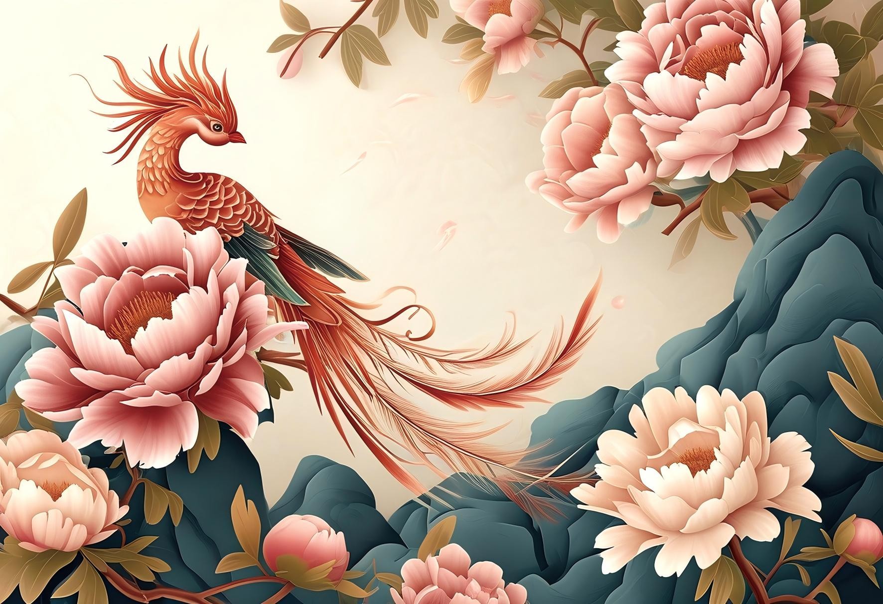 凤穿牡丹纹样插图   图片来源:图虫网