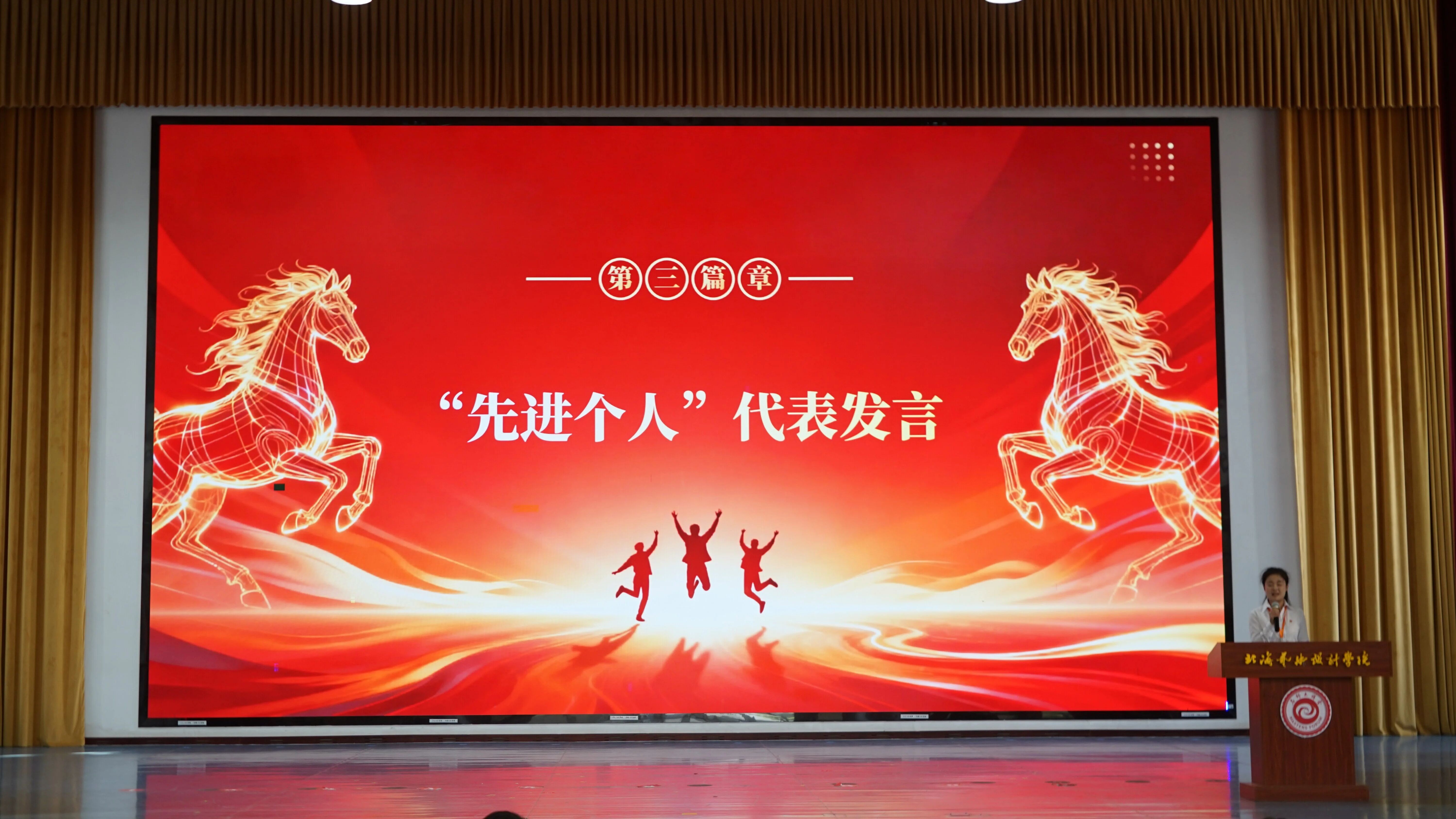 会议在校歌声中正式开启,全面回顾并肯定了本学期各项学生工作取得的成效。通过组织跨学院技能培训与交流活动,日常文书、会务及证书印制等工作高效推进;在多类演出与比赛中表现突出,荣获多项荣誉;同时持续开展爱国主义教育,顺利完成升旗任务与新护旗手的培养上岗。会议对先进个人进行了表彰,获奖代表结合自身经历分享了在工作中的成长与责任感,并表达了对指导老师的感谢,号召同学们继续团结协作、共同进步。