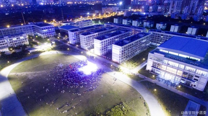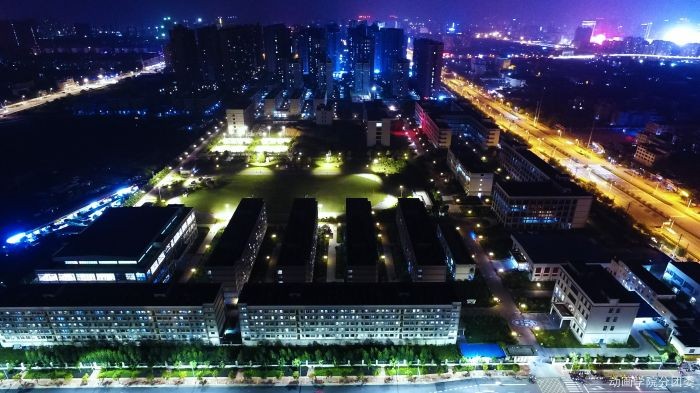 你见过晚上的北艺吗?校内暖黄的路灯摇曳着温馨的光芒,操场上的人少了,于是动物们开始窃窃私语。植物们随着夜里的风,舒服的伸着懒腰。校外的蓝色灯光成了北艺最美的衬托,冷暖交织、美轮美奂;加上特殊的视角,让人仿佛置身在满是星光的梦中。