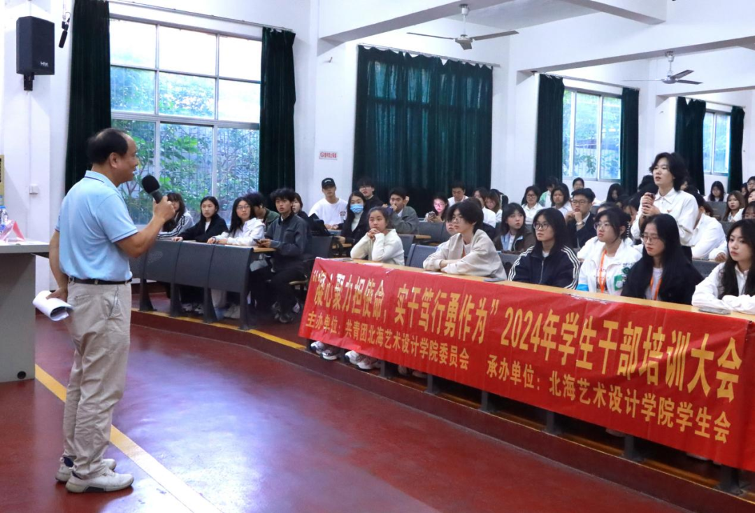 出席本次培训的领导有团委书记唐良春、副书记杨美琪、组织部部长王燕亭、社管部副部长张纭逢,书法学院分团委书记李家琪,设计艺术学院分团委书记王慧、副书记覃轶科以及校团委的老师和学生干部。
