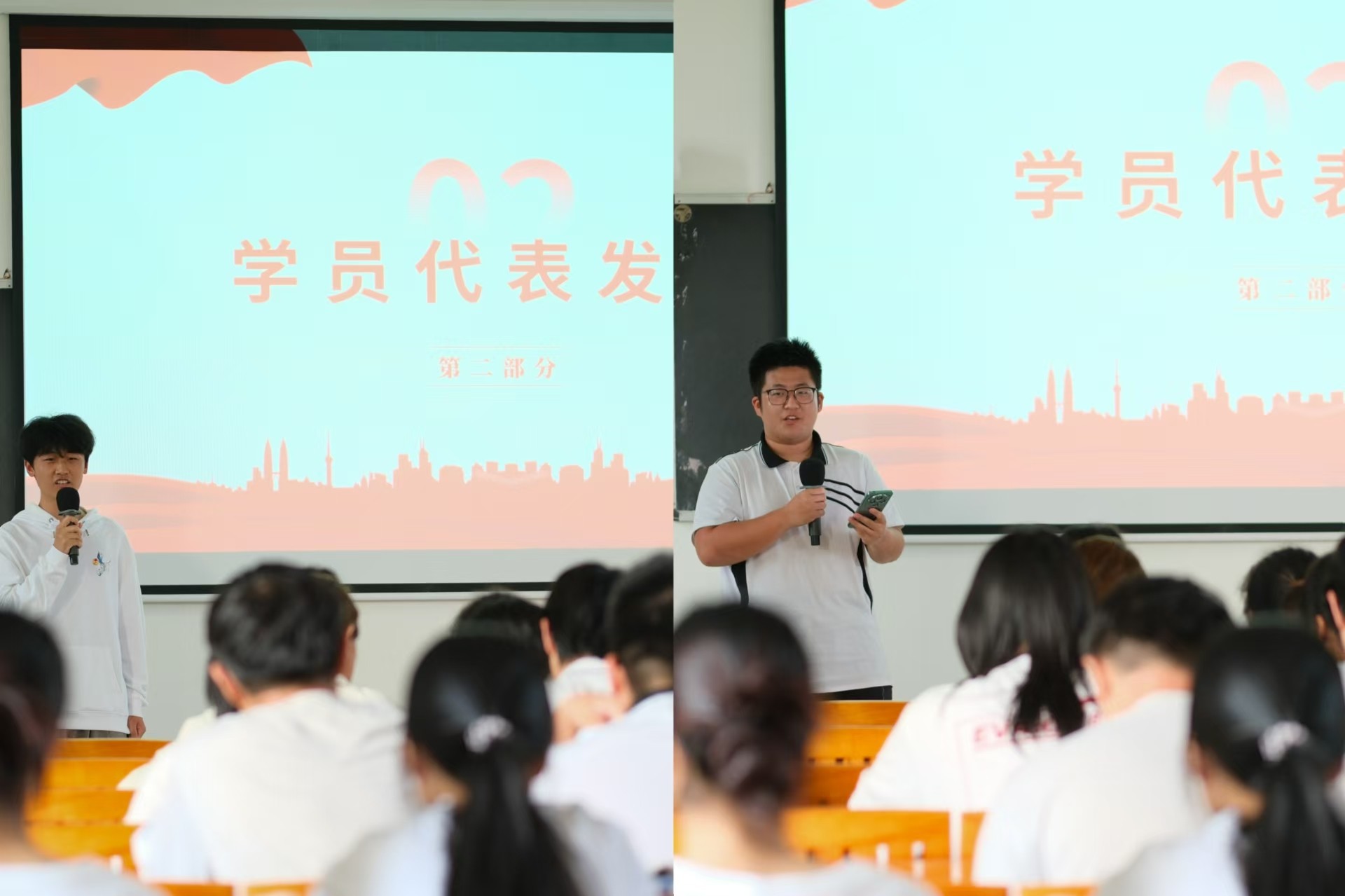 刘昊天同学代表发言            孟令豪同学代表发言