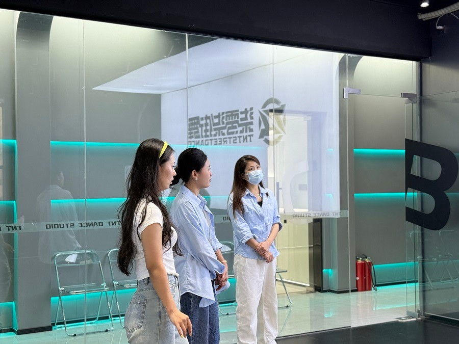 在北京舞艺舞蹈艺术中心,行动小组参观了中心的排练厅、教学场地以及演出服装道具库等设施。该中心以成人舞蹈培训和舞蹈演出为主,在爵士舞、拉丁舞古典舞等流行舞种的教学和表演方面具有丰富经验。中心艺术总监分享了流行舞市场的发展动态,并针对学院学生在舞蹈表现力、舞台应变能力等方面提出了建议。学院与中心在实习就业方面达成初步合作意向,中心表示将为学院学生提供实习机会,让学生在实践中积累舞台表演和教学经验。