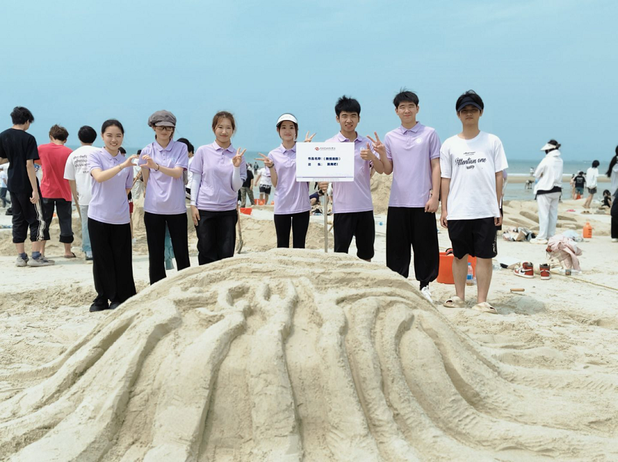 在比赛环节,舞蹈学院师生尽显卓越风采。在艺术沙雕比赛区域,舞蹈学院的老师和学生组织有序、分工合理,彼此紧密协作。