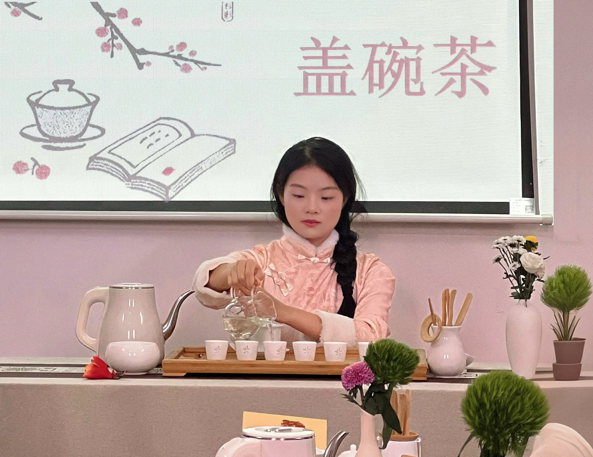 茶道艺术室的搭建旨在丰富校园文化生活,推进学生身心训练,形成志道游艺的人生志趣,同时培养茶道与茶艺相关方面的创新创业人才。目前,茶道艺术室配有12套专业茶具以及陶瓷花瓶、香插、置物架以及多媒体教学系统等教学器具与设施,能够充分满足茶道相关课程教学、实践实训的开展需要,其主要用于哲学专业《茶道与茶艺》课程教学、学生日常茶艺练习以及学校安排的其它文化活动,具体包括茶艺、插花训练以及传统香道学习等。同时,茶道艺术室也是哲学学院学生开展课外读书会、分享交流会、观影会的重要场所。(梁兵、陈贞考/摄)