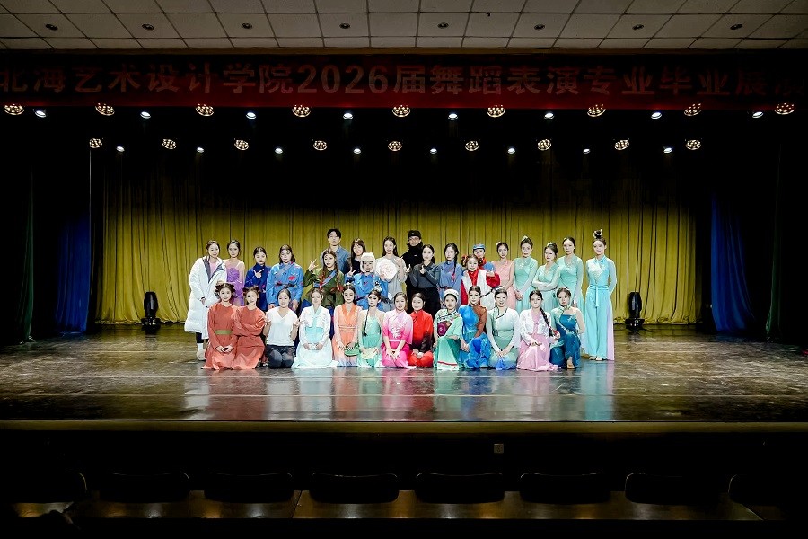 此次毕业展演的圆满落幕,既是对2026届舞蹈表演专业学子学习成果的集中检阅,也为他们的校园艺术生涯画上了圆满句点。北海艺术设计学院舞蹈学院将继续秉持育人初心,深耕专业建设,为舞蹈艺术领域培育更多优秀人才。(王飞/摄)