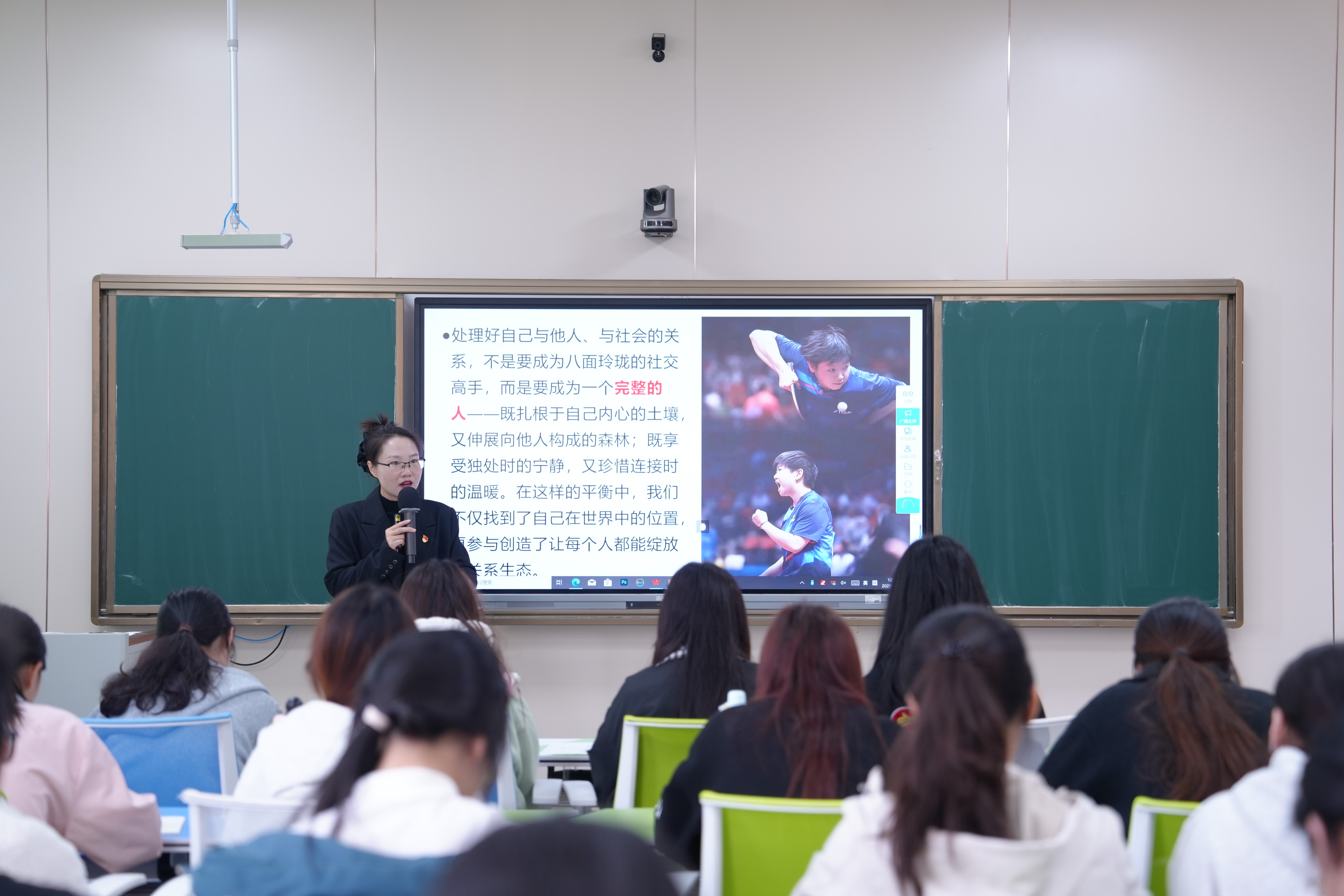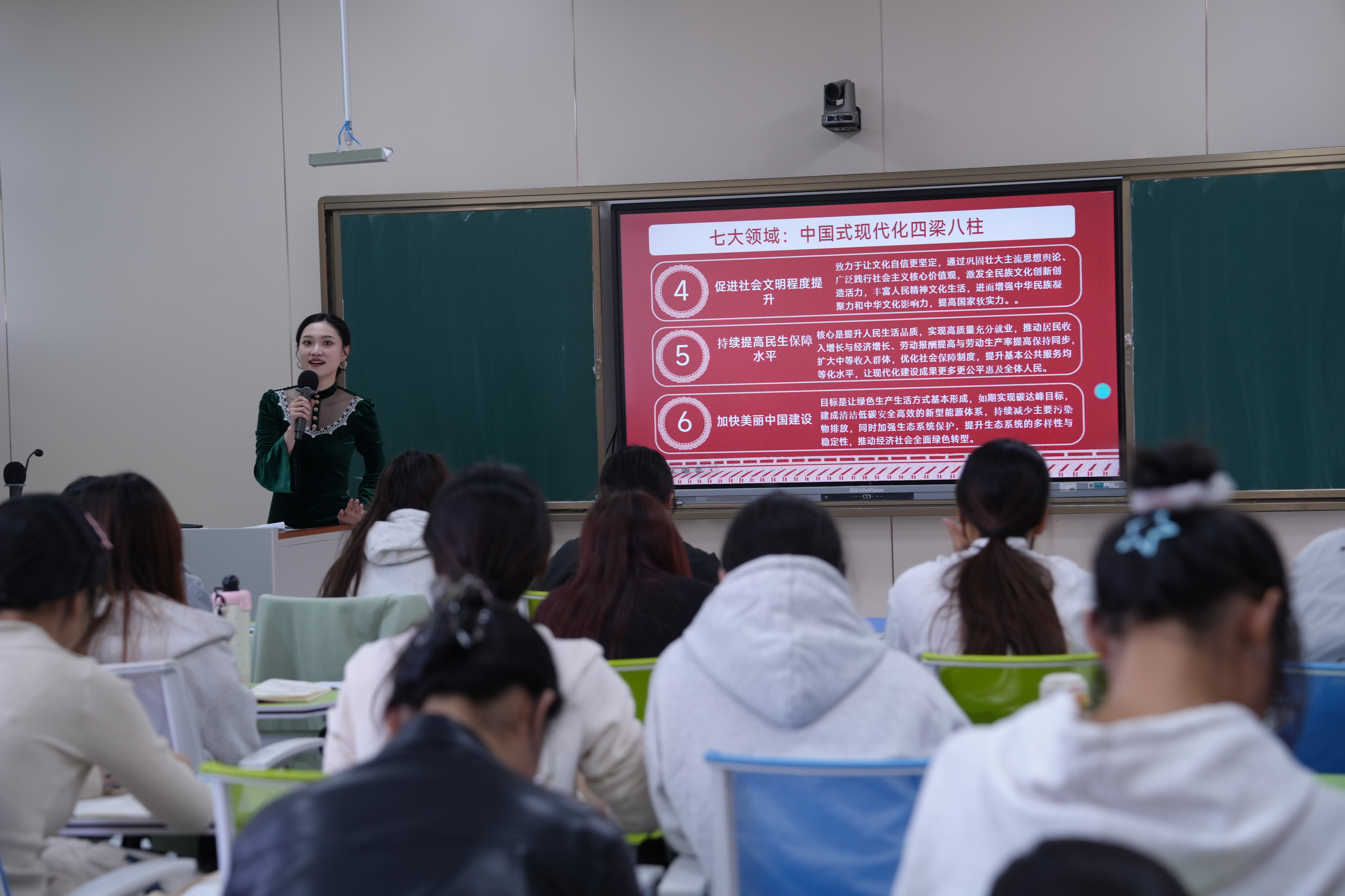 第三讲,教育学院团总支书记陈美霖围绕“十五五”规划授课,指出其重要地位,勉励两院学员彰显学科担当,寄语学生干部融个人成长于国家需求。