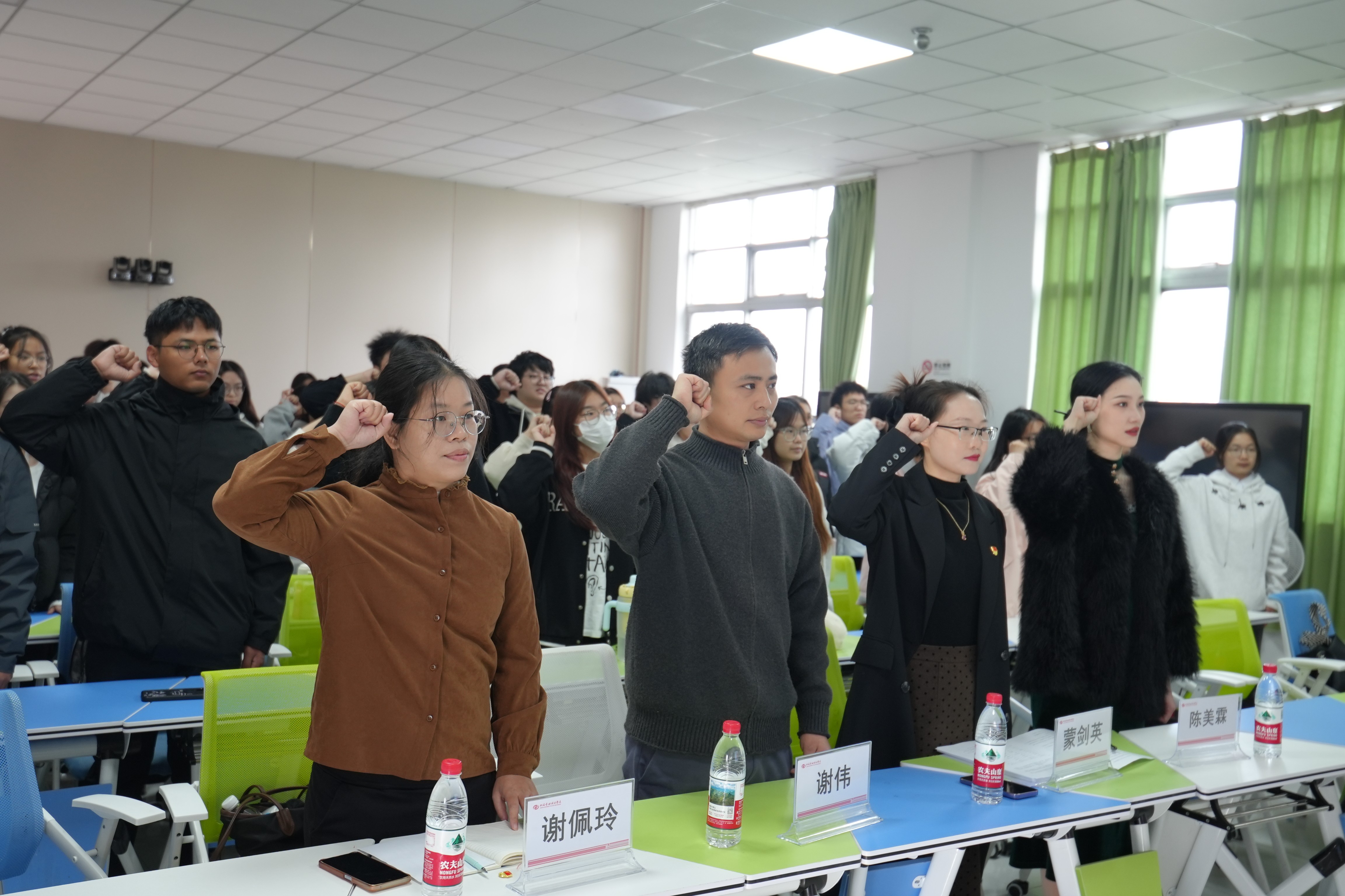 12月14日,教育学院与哲学学院联合在东区觉悟楼 401教室举办“青马工程”培训班开班仪式。哲学学院党支部书记谢伟、教育学院副院长蒙剑英、教育学院团总支书记陈美霖、哲学学院谢佩玲老师出席仪式,两院团员及学生干部参与培训。