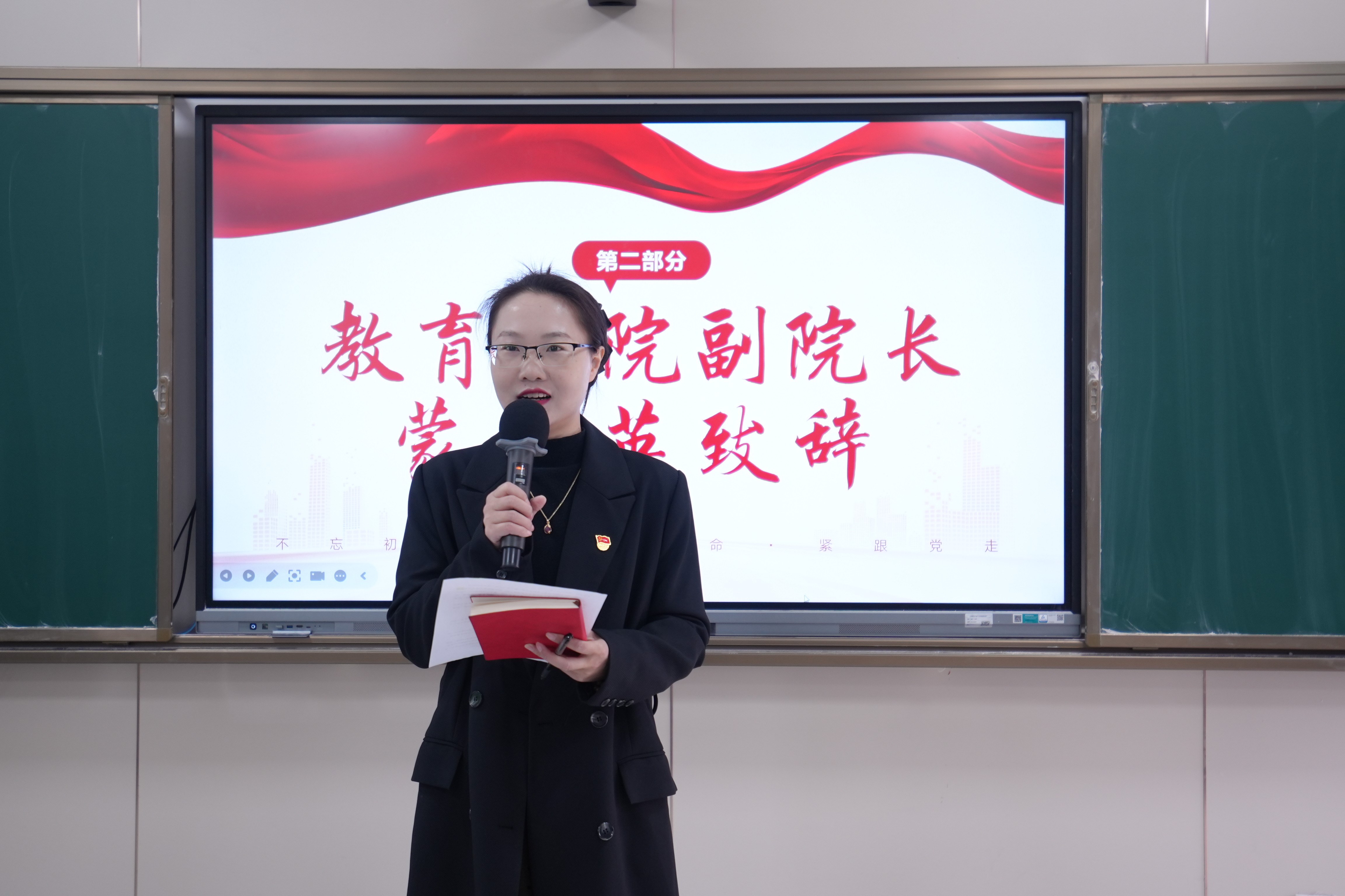 开班仪式上,教育学院副院长蒙剑英致辞。她指出,“青马工程” 是培养青年政治骨干的重要平台,勉励广大学员坚定理想信念、夯实思想根基,立足专业将理论学习与实践应用相结合,锤炼品德修为,争做有理想、敢担当的新时代好青年。