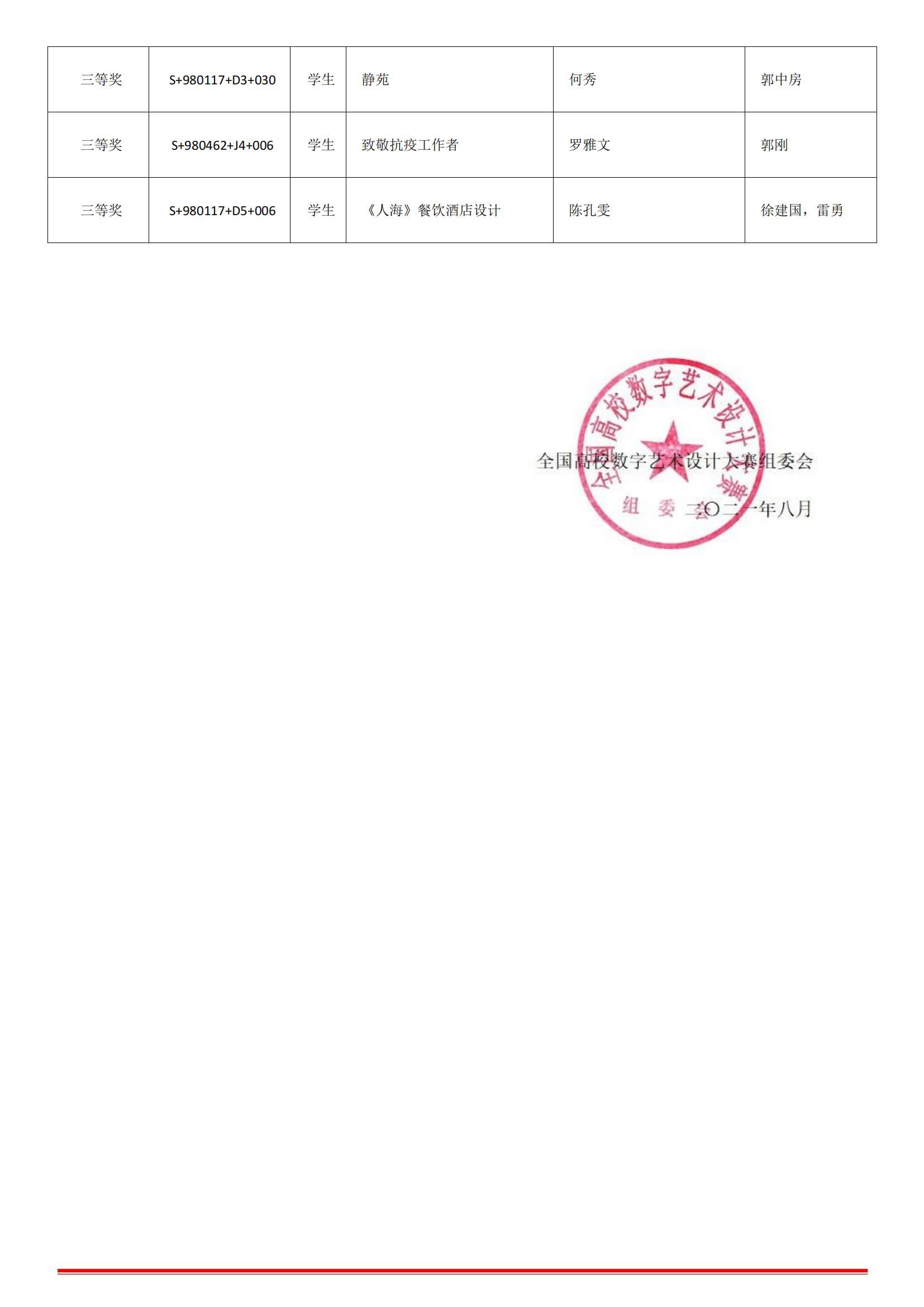 在此次比赛中,我院教师及学生斩获一等奖2项,二等奖2项,三等奖3项。此次取得的成绩离不开学院领导的重视,创作团队的不懈努力,更离不开指导教师的悉心指导,让我们再次祝贺获奖的师生们!