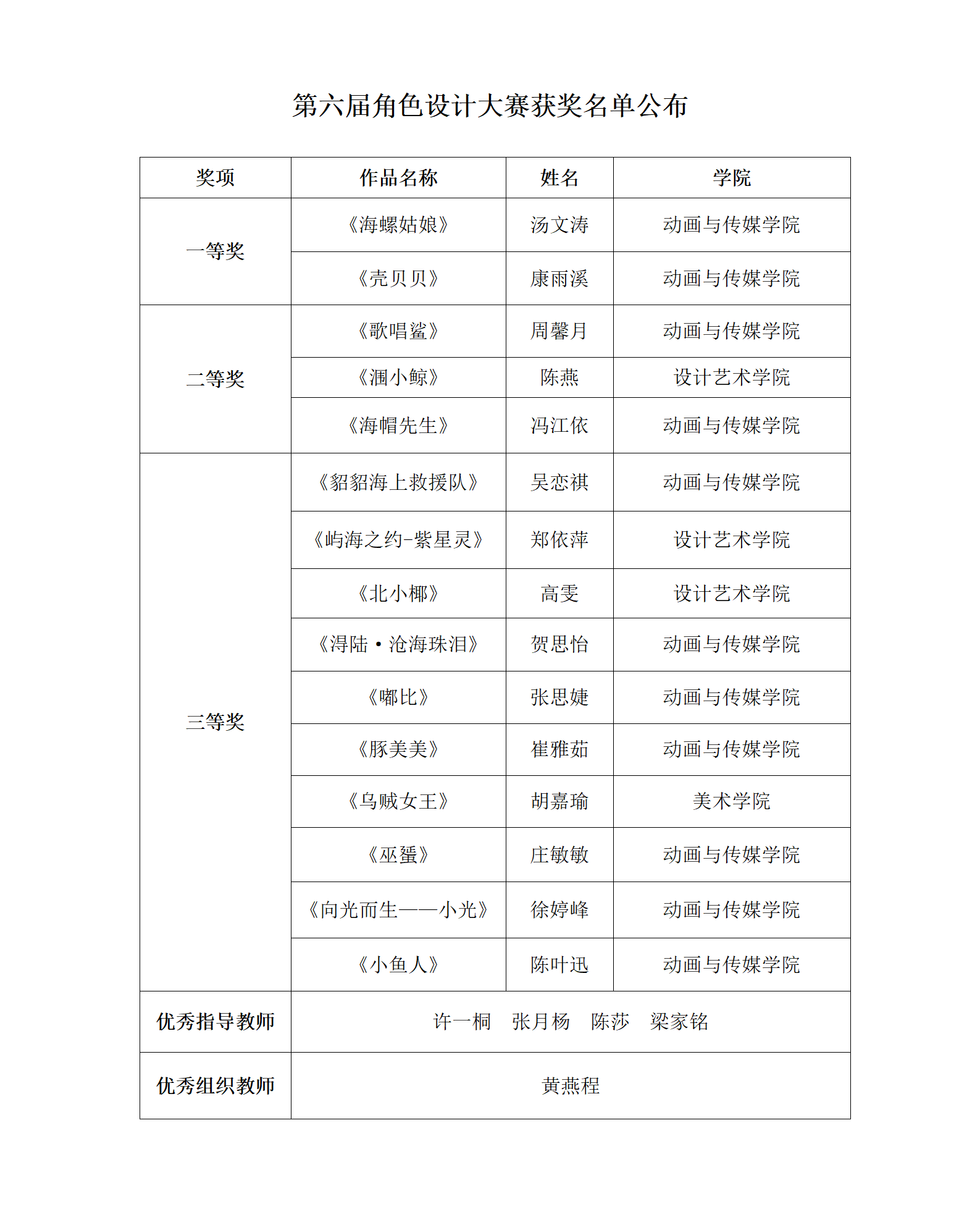 动画与传媒学院第六届“鲸鱼杯”角色创意设计大赛圆满落幕