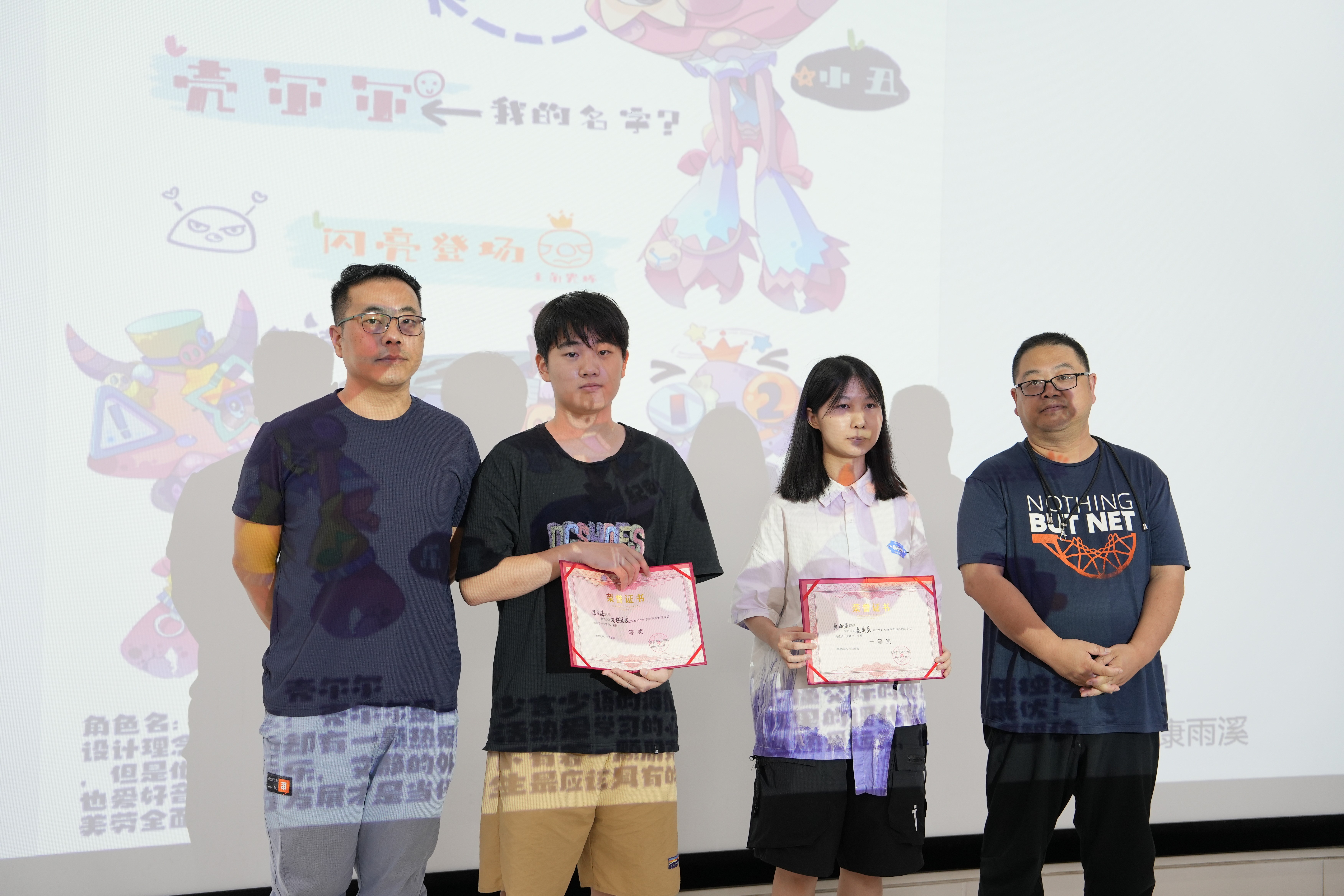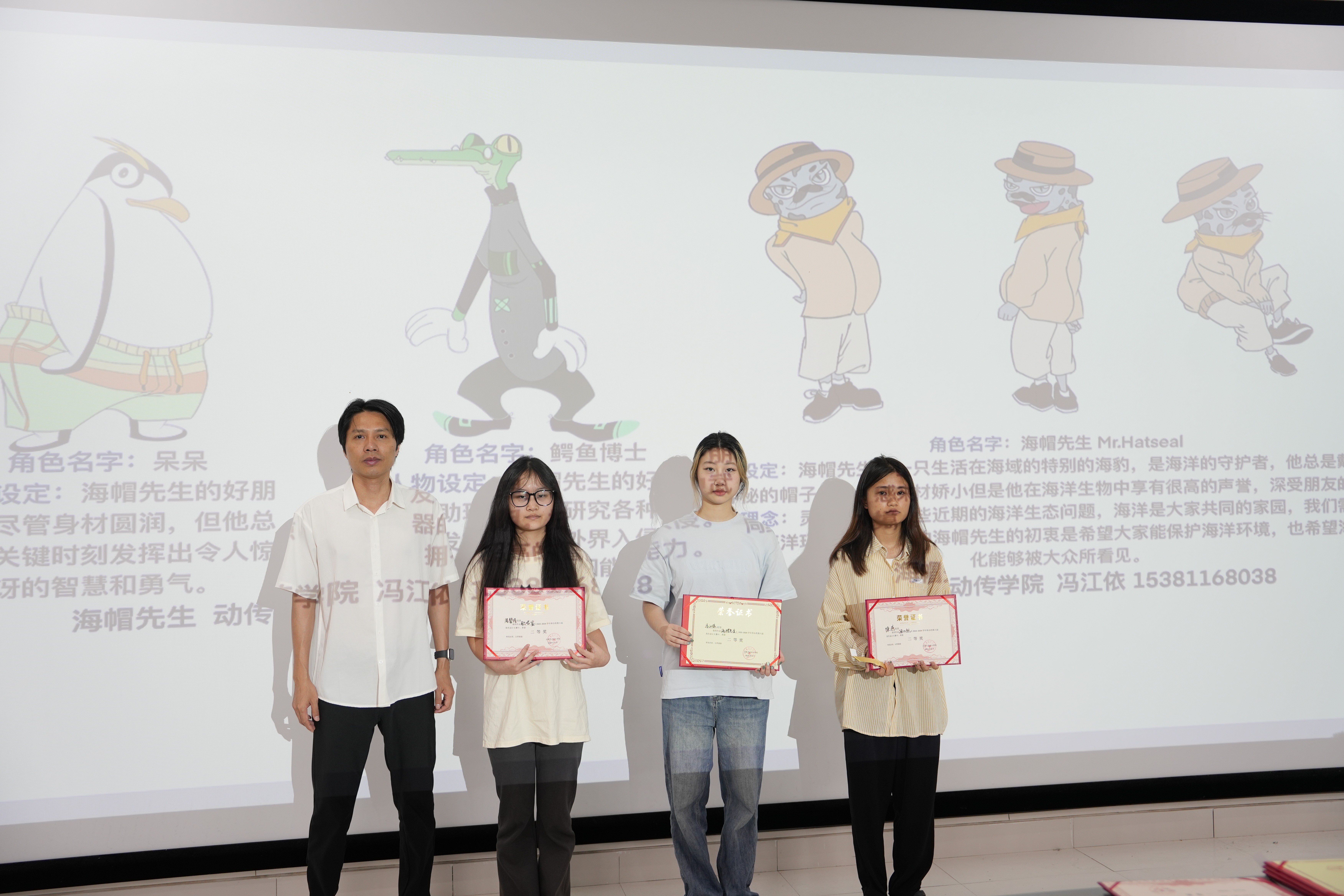 动画教研室刘海涛副主任和周亭副主任给三等奖获奖学生颁发证书