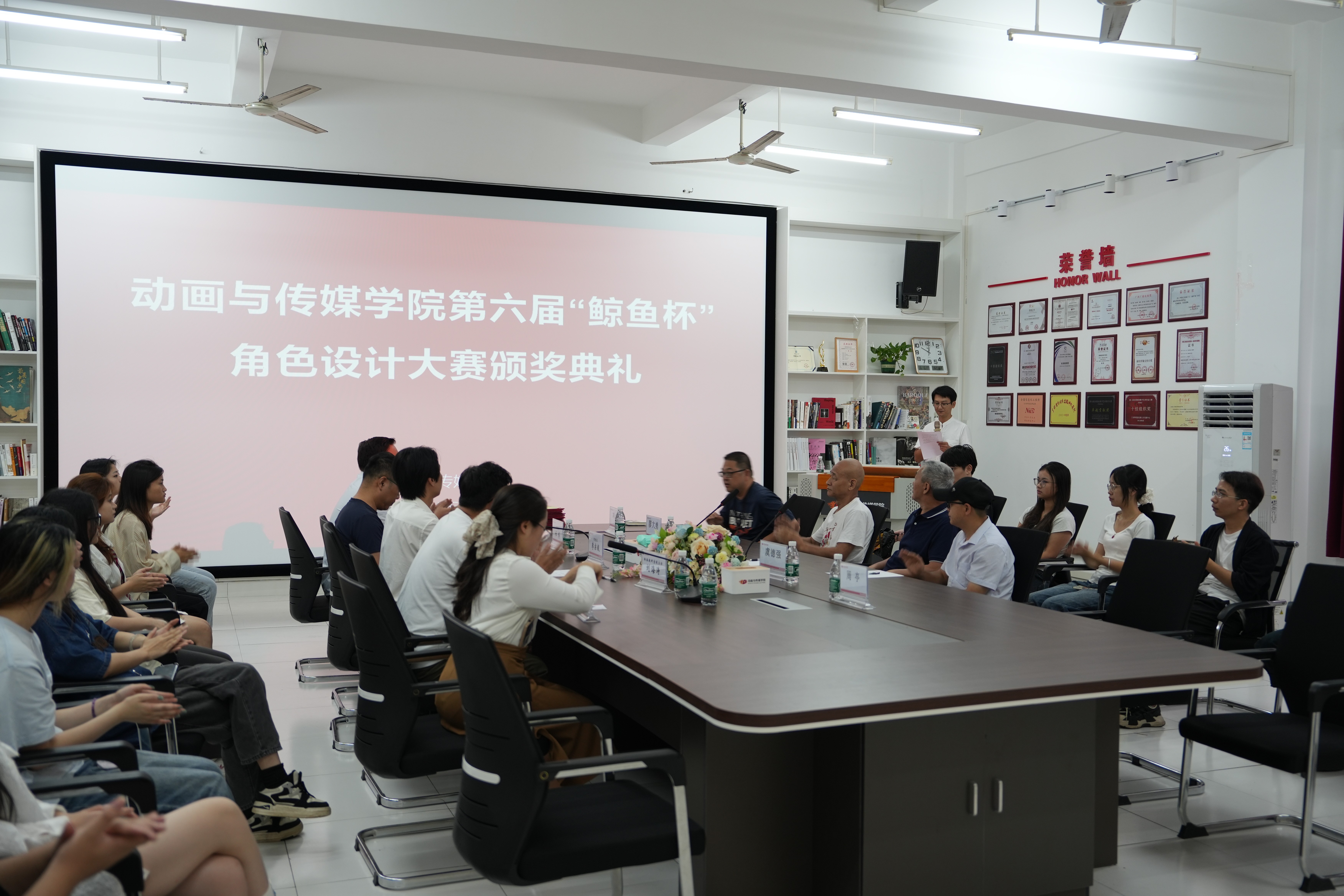 为加强学院文化建设,丰富和拓展学院文化内涵。经过3个月的精心筹备和激烈角逐,6月6日上午,动画与传媒学院第六届“鲸鱼杯”角色创意设计大赛迎来了颁奖仪式。动画与传媒学院张帆书记、动画专业带头人王钢教授、资深教授廖大勇学院副院长杜博、刘涛、李宗毅以及30名师生参加了此次颁奖仪式。