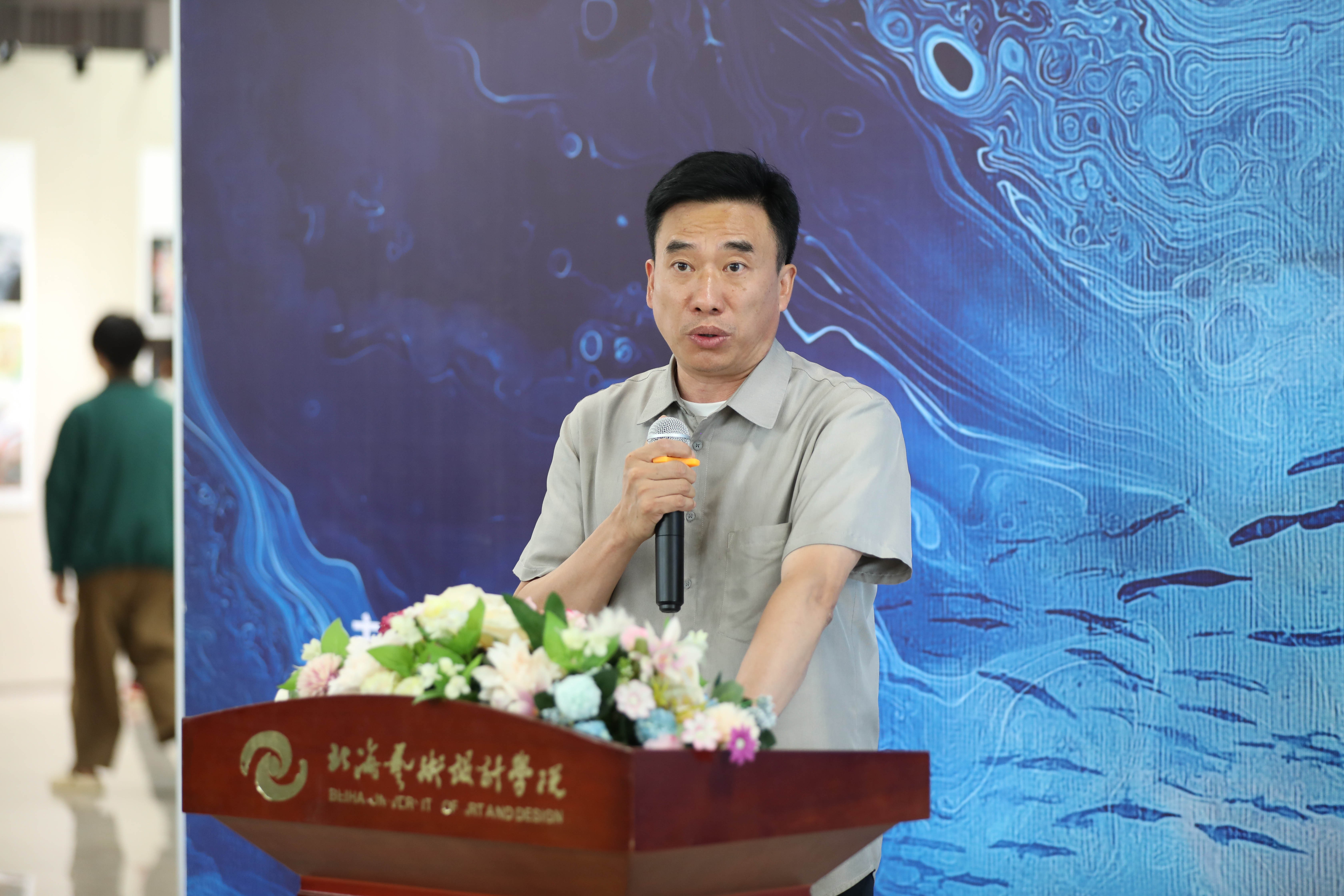 随后,孙永辉院长在致辞中表示,动画与传媒学院将持续深耕 “多元共生” 教学体系,打破学科壁垒,鼓励学生从跨文化语境、多元艺术风格与前沿技术中汲取灵感,培养兼具全球视野与创新思维的动画人才。“动画不仅是技术的呈现,更是观照世界的语言。” 孙永辉院长期待同学们以联展为起点,用作品传递对生活的热爱与思考,在艺术探索中塑造独特的艺术表达。