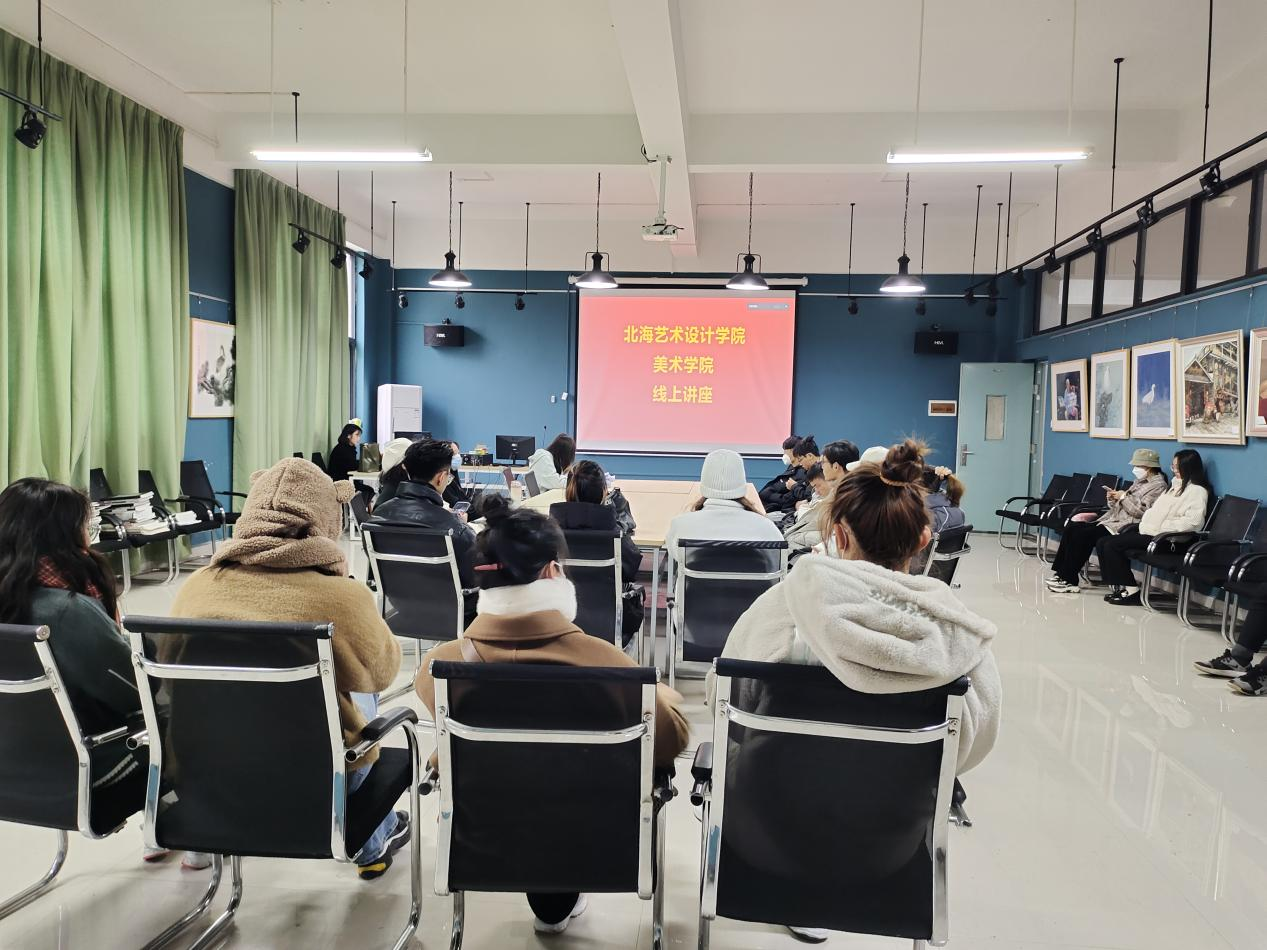 2021年12月28日上午9点,陈孟昕教授为美术学院绘画专业进行《线的表现与审美——兼谈“学院派”的造型问题》讲座,本次讲座由线上会场以及两个实体会场组成,近300名学生参与,由美术学院综合办主任肖玺主持,综合办副主任陈建江组织实体会场。