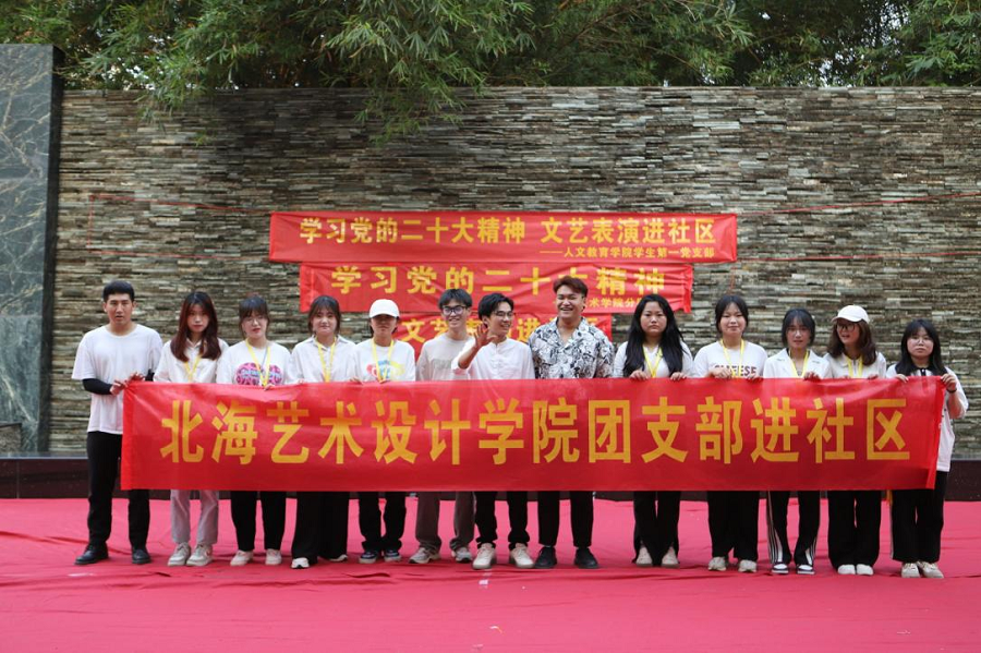 10月29日,北海艺术设计学院人文教育学院分团委举行的文艺表演进社区实践活动,在北海市橄榄苑小区如约举行。