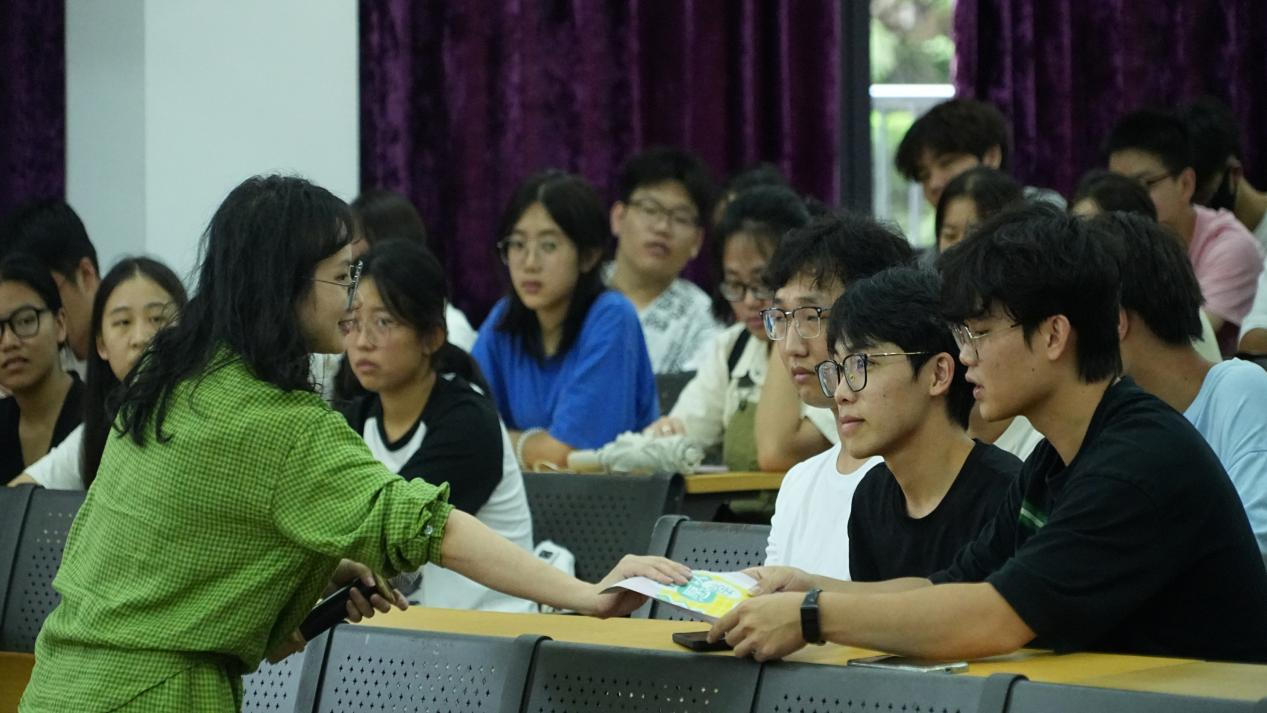 大会伊始,马有泽书记以“青春向党,逐梦前行”为主题开展入团启蒙教育。他从共青团的诞生背景切入,结合五四运动中青年学子的爱国壮举、新时代青年在脱贫攻坚和科技创新领域的突出贡献等案例,帮助新生深刻理解共青团作为党的助手和后备军的重要性质。期间,大会设置了“共青团知识知多少?”问答互动环节,题目涵盖团章内容、共青团历史大事件、新时代共青团工作重点等多个方面。同学们积极举手抢答,答错时相互提醒,答对时现场响起阵阵掌声,原本严肃的教育课堂变成了活跃的交流平台,充分展现了新生们的学习热情和青春活力。