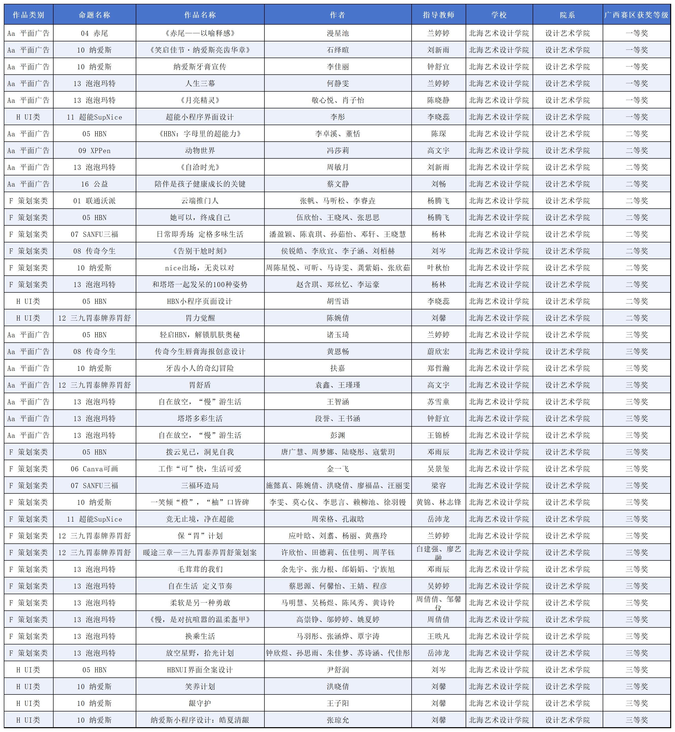近日,第十七届全国大学生广告艺术设计大赛获奖名单揭晓,在我院师生共同努力下,共获得55个奖项,其中全国三等奖1项,全国优秀奖12项,省级一等奖6项,省级二等奖12项,省级三等奖24项。