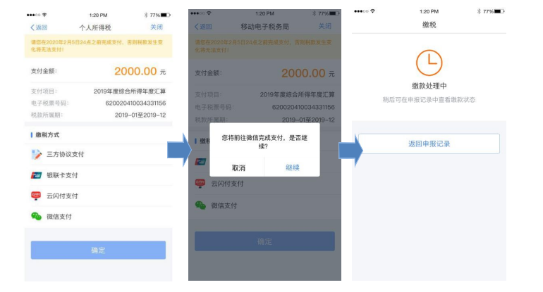 若暂不缴款可以选择【返回首页】或【查看申报记录】, 后续可再次进行缴款。