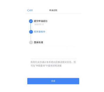 选择银行卡后提交退税申请,可以看到退税申请进度。