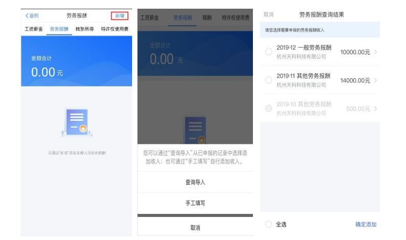 系统将自动归集您在纳税年度的收入纳税数据[工资薪 金、劳务报酬(保险营销员、证券经纪人)、特许权使用费所得],并直接预填至相应申报栏次。其他劳务报酬和稿酬 所得的填报,见本场景填报方式 1 第三步中的【新增劳务报酬或稿酬】。
