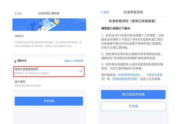 使用手机APP 端申报,您可以从以下入口进入年度汇算: 一是从首页的【常用业务】区块的【综合所得年度汇算】进入;二是从【快捷入口】-【我要办税】下或底部【办税】菜单进入后,点击在【税费申报】下的【综合所得年度汇算】。