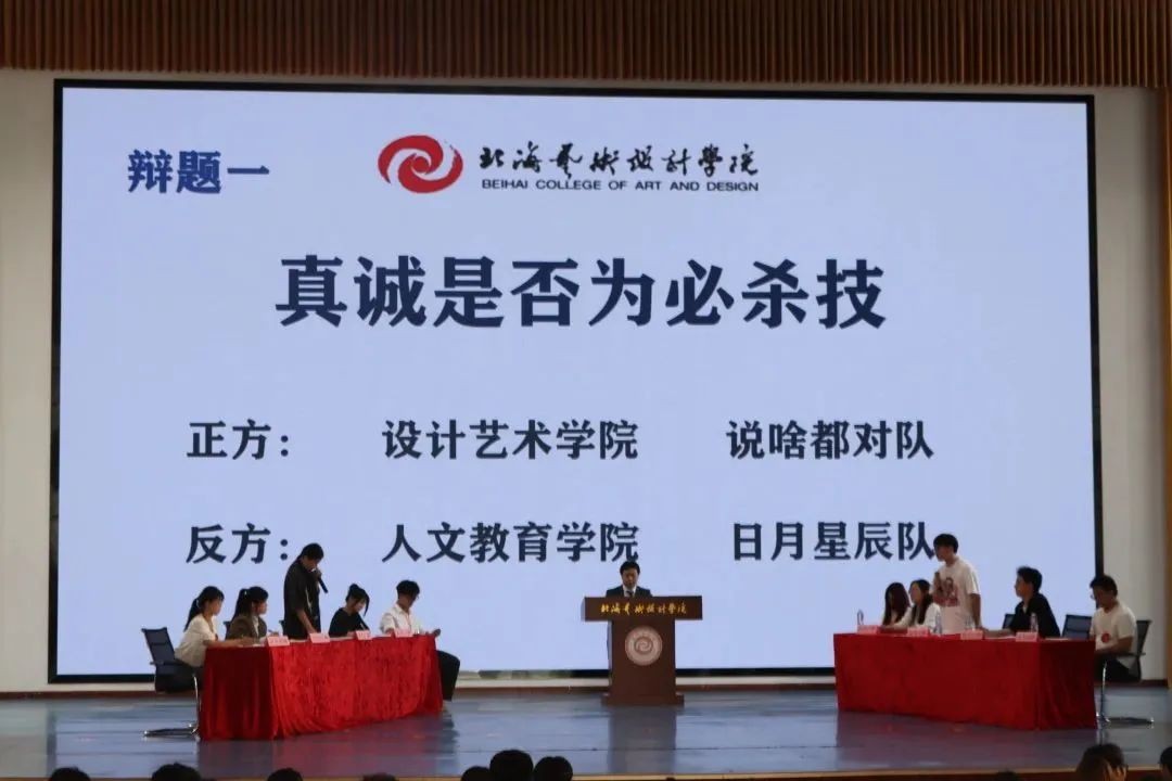 博弈不息,思辩不止。唇枪舌战的背后,是智慧与灵感的对战。为加强培养大学生逻辑思考能力、语言表达能力、组织能力,以及团队协作能力,北海艺术设计学院于4月15日下午3:00在大礼堂举办学习杯辩论赛决赛。