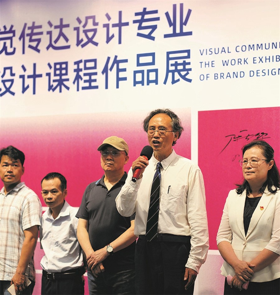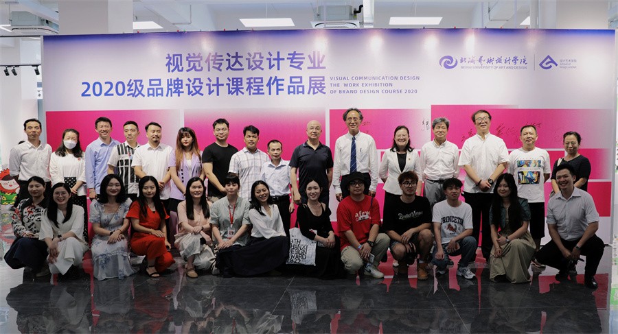 近日,设计艺术学院2020级视觉传达设计专业品牌设计课程作品展在南校区艺德楼8楼顺利开展。学校党委书记张阳、校长卢新华出席活动,设计艺术学院党总支书记黄锦、院长李林平、副院长白建强、副院长李佩以及傅颖哲、范娅兰、侯林、龚东庆、王善民等教授参加活动,北海远见传媒集团、北海市广告协会会长刘利平,北海银滩景区公司总经理助理闫俊天,北海市任逍遥旅游文化有限公司执行董事张广,京海传媒副总经理刘龙文应邀出席活动。