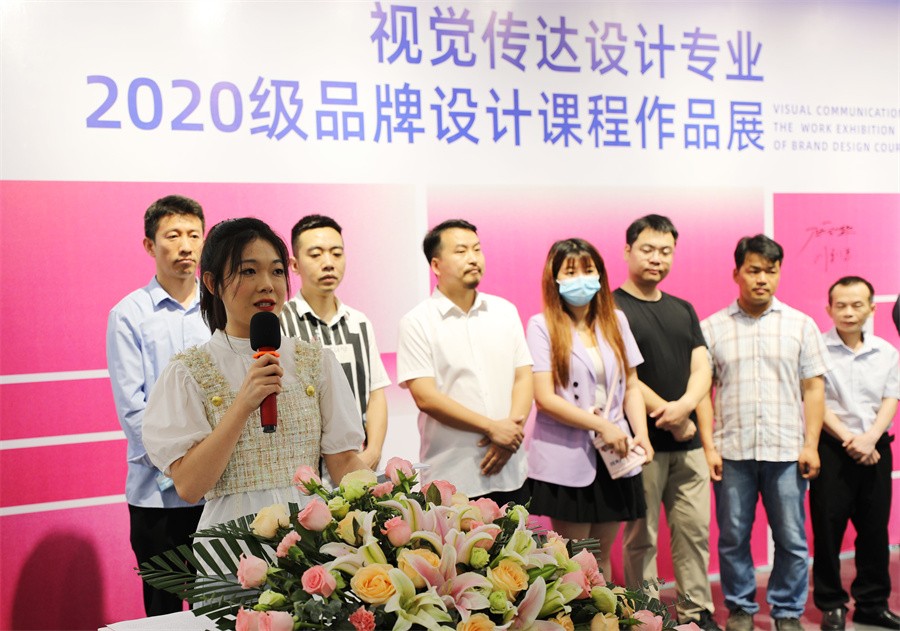 学生代表钟潘妮在发言中说到,品牌设计要综合考虑品牌背景、品牌定位、品牌理念、品牌现状、社会环境等因素,在设计中寻找最隹的表达方法,通过有效的视觉语言将自己的创意展示在大众面前。同时,她代表全体同学对本次课程任课老师的辛劳付出表示诚挚感谢。