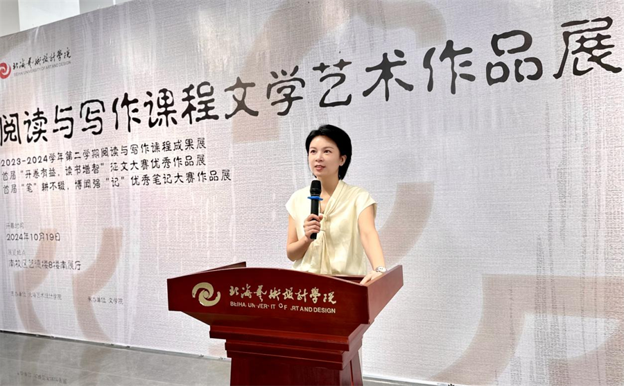 文学院常务副院长梁镨文为阅读与写作课程文学艺术作品展致辞